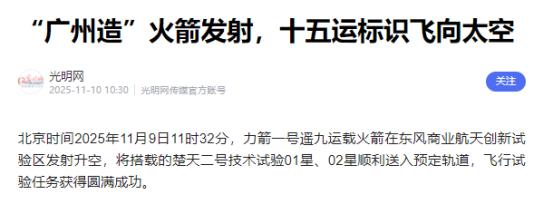 祝贺! 我国发射成功! 据报道,11月9日11时32分,我国在东风商业航天创新试验区,成功将搭载的楚天二号技术试验01星、02星发射升空,卫星顺利送入预定轨道,飞行试验任务获得圆满成功。 这次担纲发射任务的,是中科宇航的力箭一号遥九运载火箭。这已经是力箭一号的第十次飞行了,看得出来这枚火箭的技术已经相当成熟。 中科宇航的总设计师史晓宁说过,这枚火箭就是专门针对中小型卫星市场设计的,低轨道运载能力能覆盖1.5吨到2吨的范围。 更关键的是它的成本控制,要是发射2吨以内的卫星,这枚火箭每公斤的成本已经降到1万美元以下了,这在商业航天领域可是相当有竞争力的。 而被这枚靠谱火箭送上去的,是楚天二号的两颗技术试验星。这两颗卫星来头不小,由航天科工二院空间工程总体部负责总研制,还是在武汉国家航天产业基地——也就是咱们说的“中国星谷”——完成总装下线的。它们上天可不是去“闲逛”的,主要用来做光学遥感对地观测的试验。 简单说,就是要验证卫星能不能把地面的情况看得更清楚,还能处理出更精细的图像,这就是所谓的超分辨率处理应用能力。 这些技术听起来有点玄乎,但用处可实在得很。卫星传回来的数据,能帮着做大型水利设施的安全运维,比如水库、大坝有没有隐患,从天上看一目了然。 它还能监测海洋的生态环境,哪里出现污染、水质有啥变化,都逃不过它的“眼睛”。 遇上自然灾害更能派上大用场,不管是洪水、地震还是森林火灾,卫星能提前预警,灾后还能快速评估灾情,帮着提升应急管理能力。 可能有人不知道,这两颗卫星其实是“楚天”星座的一部分。这个星座是湖北省、武汉市和航天科工二院一起合作建的大项目,规划总投资得100亿元。 按照计划,到2030年的时候,这个星座要实现300颗以上卫星组网,到时候就能打造出一套能即时感知、还能直接和地面设备连接的空间基础设施。 去年5月21日,“楚天”星座001星已经发射升空了,还顺利完成了不少空间技术验证,那回就标志着我国在超低轨道卫星技术上取得了重大突破。 这次01星、02星的成功发射,算是给这个星座的建设再添了把火。湖北省国防科工办的负责人说了,他们要借着这个势头,围绕“火箭链、卫星链、数据链、服务链”这四条链做融合,构建起“箭、星、网、端”的全产业链生态。最终目标是打造千亿级的商业航天产业集群,把湖北建成在全国都有影响力的商业航天创新高地。 现在我国商业航天发展得越来越快,像力箭一号这样的火箭不断完成发射任务,卫星技术也在持续突破。“楚天”星座的一步步推进,不仅能孵化出卫星信息直接服务大众的新产业,还能推动好几个领域的技术进步。从单颗卫星试验到星座组网规划,从火箭技术突破到产业链完善,这场成功的发射背后,藏着的是我国航天强国建设的扎实脚步。 来源:光明网