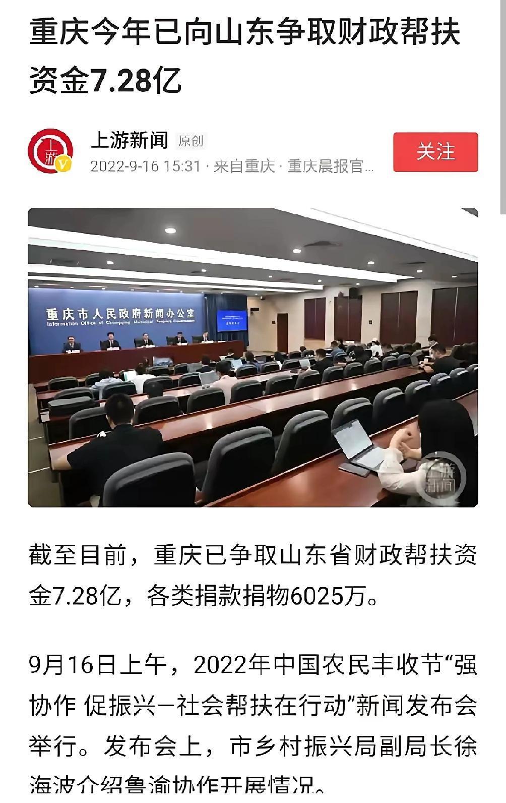 重庆需要山东帮扶吗?总感觉现在重庆比山东富多了,反过来帮扶山东还差不多。 据说山东的体制内人员前去对口支援的,回来没一个不骂的。因为人家重庆方面体制内人员的收入,要比济南高的多。 而且重庆城市建设规模,济南+青岛都比不了。 就这样,重庆还好意思向山东争取财政帮扶资金,更魔幻的是,山东真给了。