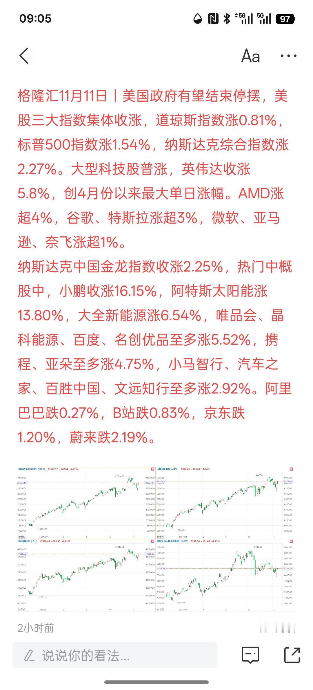 美股三大指数集体收涨,纳指、中概指数涨超2%,英伟达涨近6%。 昨晚的中概股也集体上涨,美国斯达克上涨2%,那随着美联储持续降息,全球资产还会持续上涨! 小鹏盘中涨幅16%。最主要的还是能源板块集体都上涨,包括光伏发电涨幅靠前,在太阳能发电可能会成为接下来很多国家主要发展的方向,对于光伏板的需求量会逐年增加!那能源发展对于未来科技的发展是主要的需求!