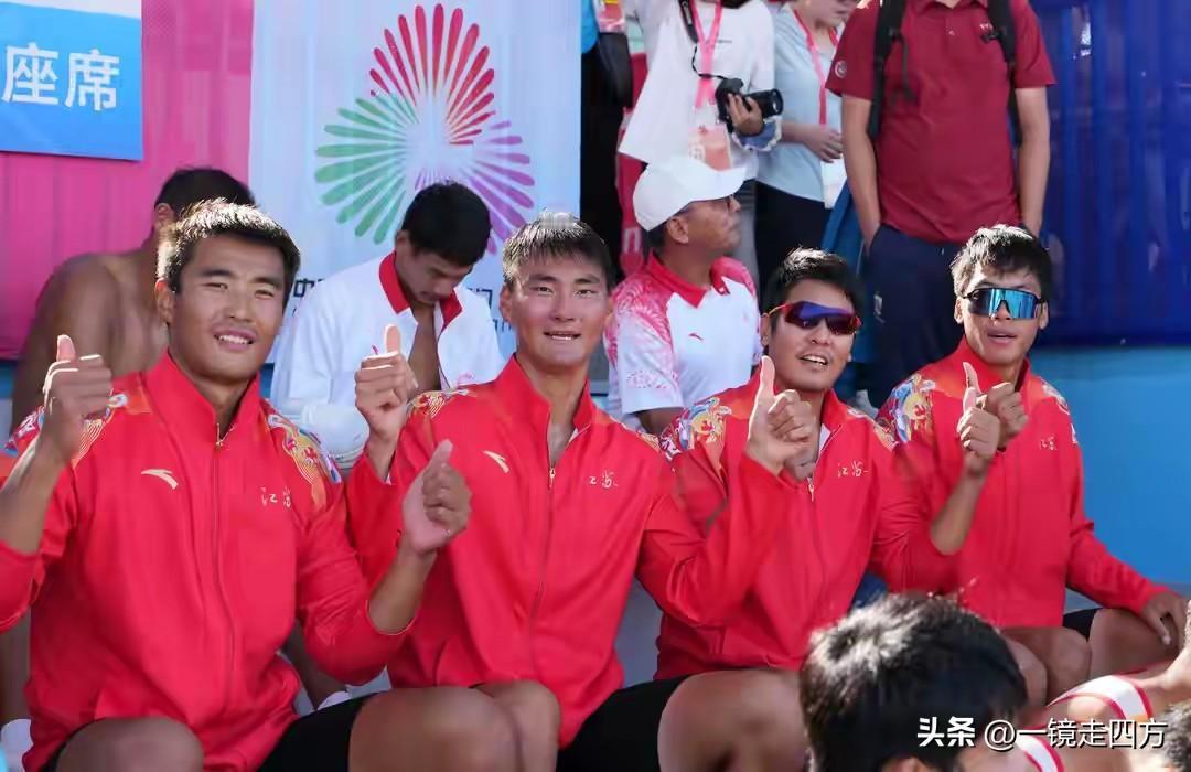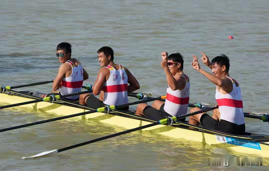 第十五届全运会赛艇比赛首日产生了8枚金牌,在率先进行的男子四人双桨的决赛中,由张自豪、臧哈、张汉文、蔡鹏鹏组成的江苏队以4分12秒24获得金牌,随后的7个项目的金牌分属四川、辽宁、河南、浙江和安徽,其中四川和辽宁都拿到两金,东道主广东队在两项决赛惜败对手,获得两枚银牌。