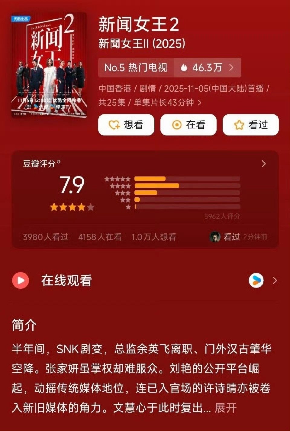 新闻女王2开分7.9 新闻战场再掀风浪!文慧心回归手撕资本,AI主播争议引发行业思考,女王团默契协作破局,剧情真实到窒息,优酷每日12点追更~