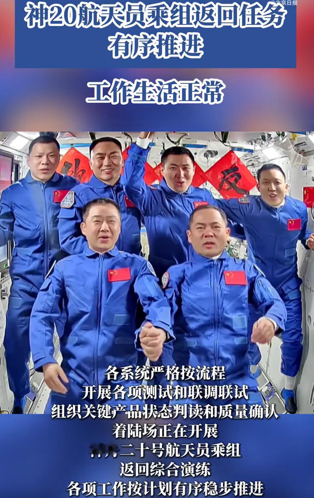 神舟二十号乘组返回任务,正在有序推进。 中国人常说,福祸相依。 返回任务突然出现的“小插曲”,反而让我们可以对六名航天员,长时间共同在天宫空间站开展工作和生活,进行一次验证。 这也为后续多人(三人以上),开展在轨生活和工作,提供了一次很有价值的试验机会。