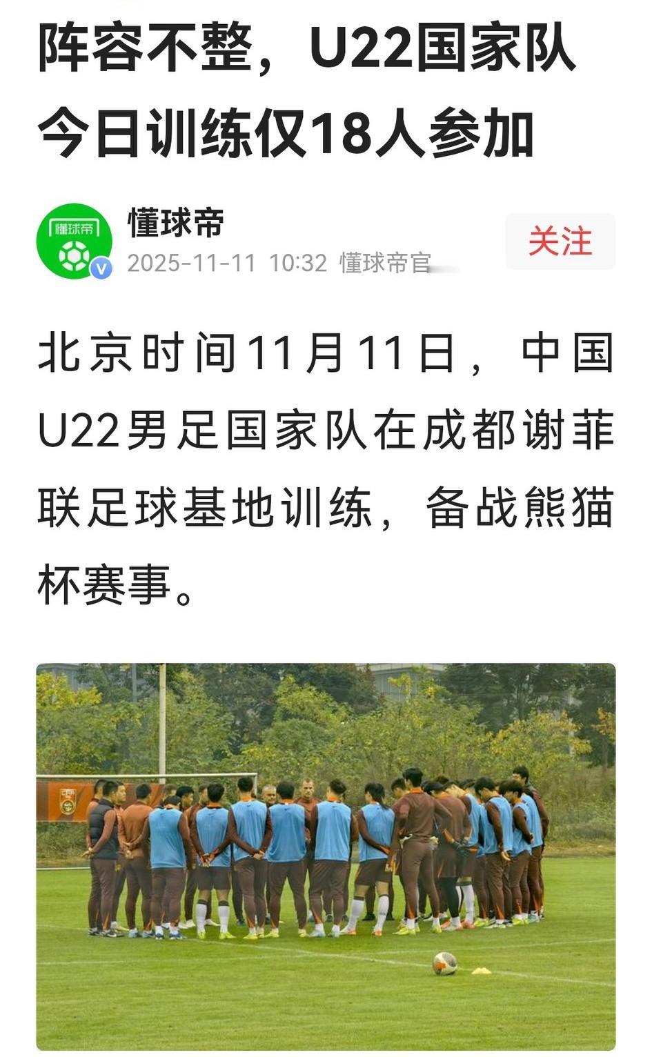 真离奇!熊猫杯明天就要鸣笛,可u22国足至今却只有18人到队。在本国比赛,赛前对抗的AB队球员都凑不齐。 表面上,山东和上海队相关球员还要打全运会3、4名决赛,攘外先服从安内。王钰栋、彭啸可能在全运赛场受伤了,让安东尼奥失去部分国足主力,比赛锻炼价值,显然已经大为打折。 这一困境,有两点值得置疑:一是明知与全运会冲突,熊猫杯为何不推迟比赛日期?二是明知上海山东会进全运四强,为什么不多招些其他球员参加u22集训呢?