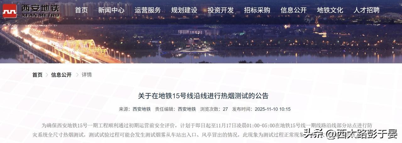 最新进展!西安地铁15号线一期开通进入倒计时啦!作为今年西安唯一要开通的地铁线路,它的每一步进展都备受瞩目。 目前,15号线一期已进入空载试运行阶段,这可是开通前的关键一步!截至2025年10月,全线“洞通、轨通、电通”完美收官,正线区间隧道通信系统也实现“三通”,细柳主变电站已建成投用 ,为地铁运行注入“电力心脏”。细柳、府君庙等车站出入口已完工,站名标识也安装到位。 最新消息,11月9日,运营前安全评估会顺利举办,又为开通进程加上一把劲。而且,11月1日 - 17日凌晨1点到5点,沿线部分站点在进行防灾系统全尺寸热烟测试,模拟火灾场景检验设备可靠性,为安全运营筑牢防线。 这条线路全长19.46公里 ,西起细柳站,东至东兆余站,一共设有13座车站,串联起高新区、长安区、航天基地,堪称主城区南部的“交通大动脉”。不仅如此,它还是一条“学霸专线”,途经长安大学城,沿线高校云集,以后师生们出行可太方便了!而且开通后,将与地铁2号线航天城站、4号线东长安街站和6号线郭杜西站实现换乘。 从书香弥漫的长安大学城,到活力四射的高新创业热土“郭杜站”的设计能否媲美“大唐西市”?“邮电大学站”会不会成为新的学子打卡地? 西安地铁15号线,这条承载着无数期待与梦想的“青春线”、“科技线”。 按照计划,15号线一期将于2025年底开通初期运营,到时候,长安、航天、高新的小伙伴通勤时间大大缩短,出行效率直线上升,期待值直接拉满! 对此,您猜测15号线开通会是几号,个人认为12月26号或者28号几率比较大?