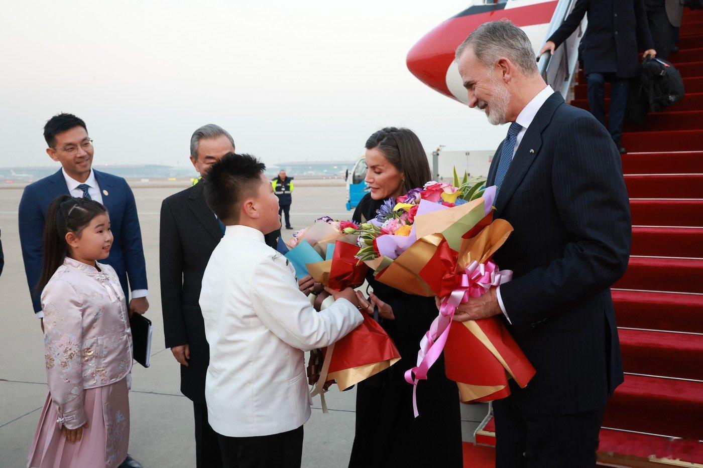 2025.11.11 西班牙国事访问中国,西班牙国王夫妇抵达北京首都国际机场,会入住钓鱼台国宾馆,今晚会有私人晚宴,有图再补(这小朋友这花真有特色)。