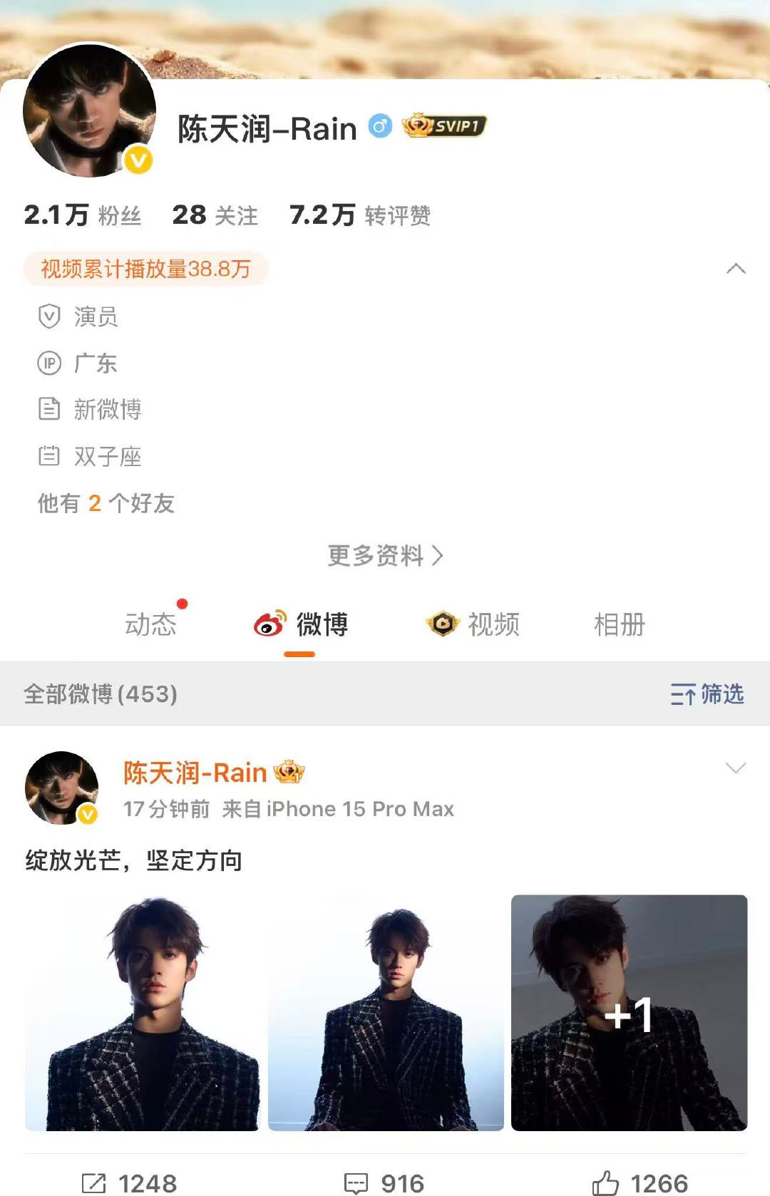 11月12日,时代峰峻三代陈天润开通个人工作室,这是继TFBOYS后,时代峰峻第四个开个人工作室的。此外, 微博认证是演员。