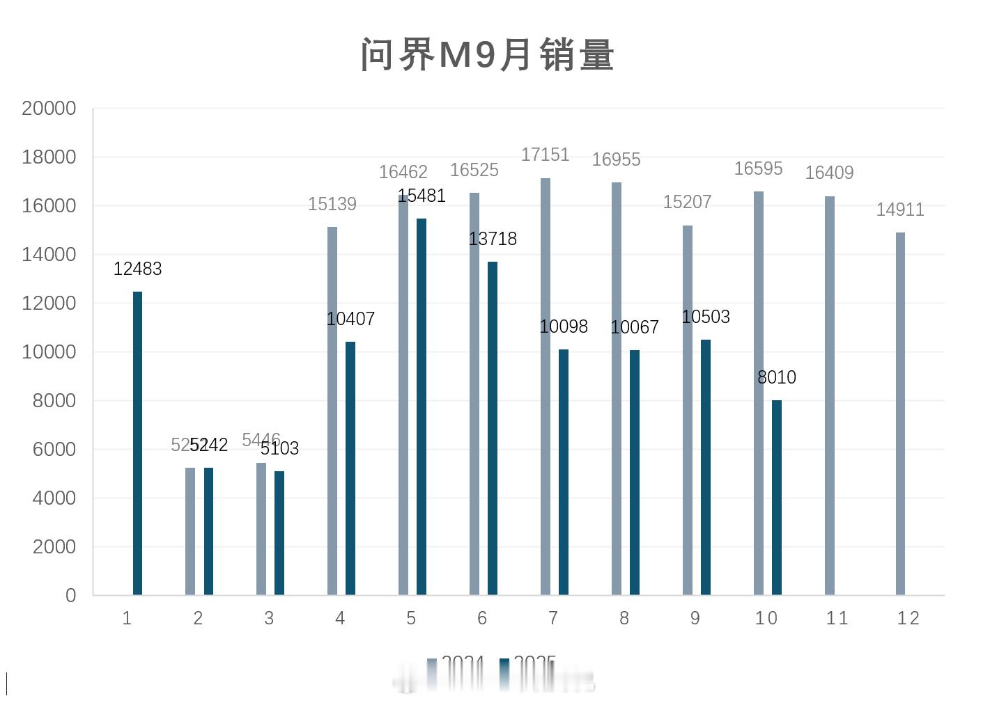 问界M9今年和去年同期月销量变化,一些趋势很明显