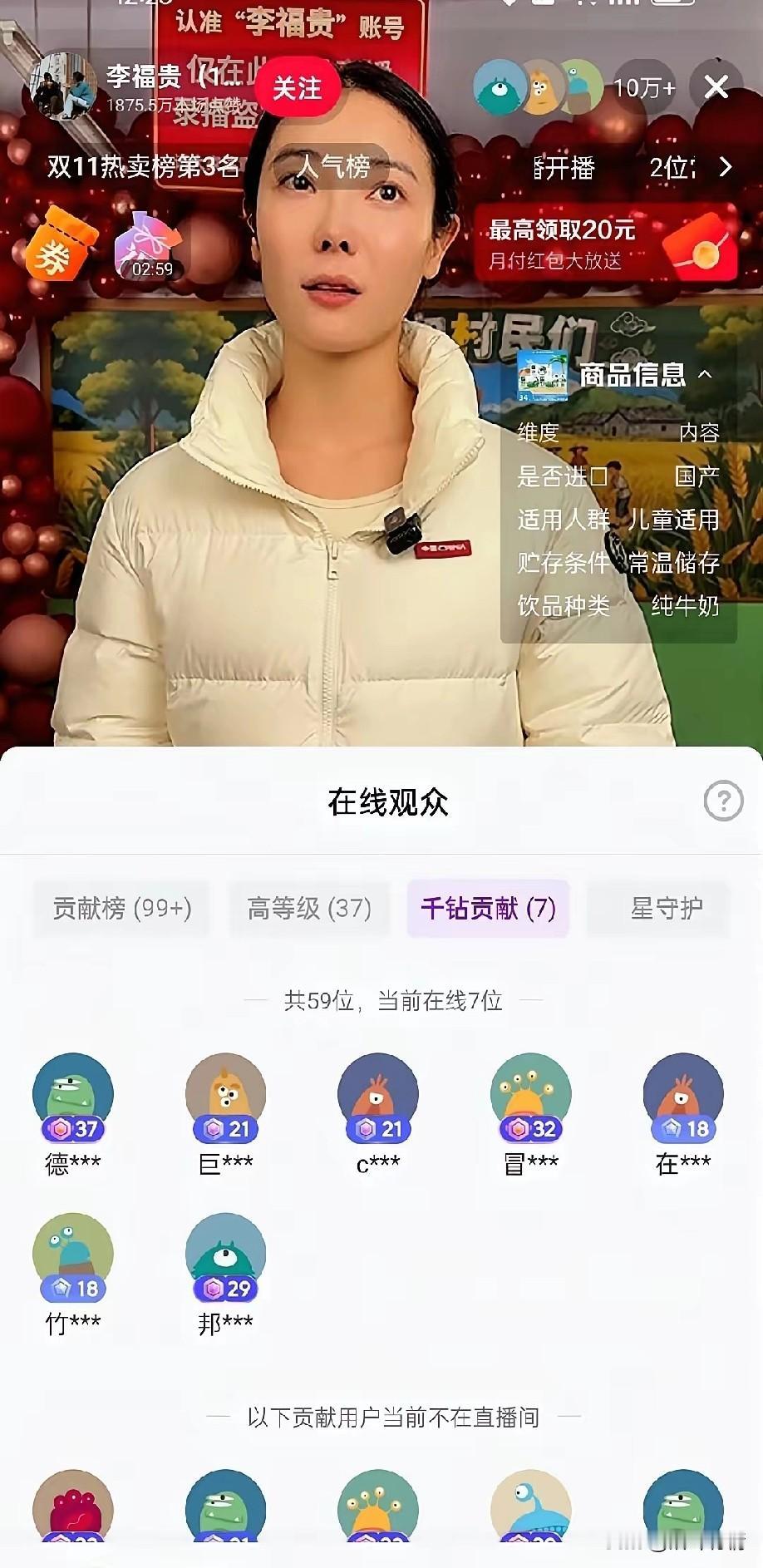 李富贵直播三农火了, 尤其是她卖的那个小米被抢疯了, 一上架就被秒空了, 以前一直看她的视频, 觉得她是个靠谱的博主, 她也说自己的收入, 几乎就是拍视频, 主要就是谈的村的生活, 觉得这个女孩真厉害, 她说自己一个月挣不了多少钱, 这次她直播一晚上收入五六百万, 这也太夸张了, 这回都知道网红直播挣钱真是快, 看了谁不心动, 怪不得都想做网红! 大家对于李富贵直播卖货怎么看? 李福贵直播间 李富贵直播间 三农普通人 山西阳城小米 老农直播带货