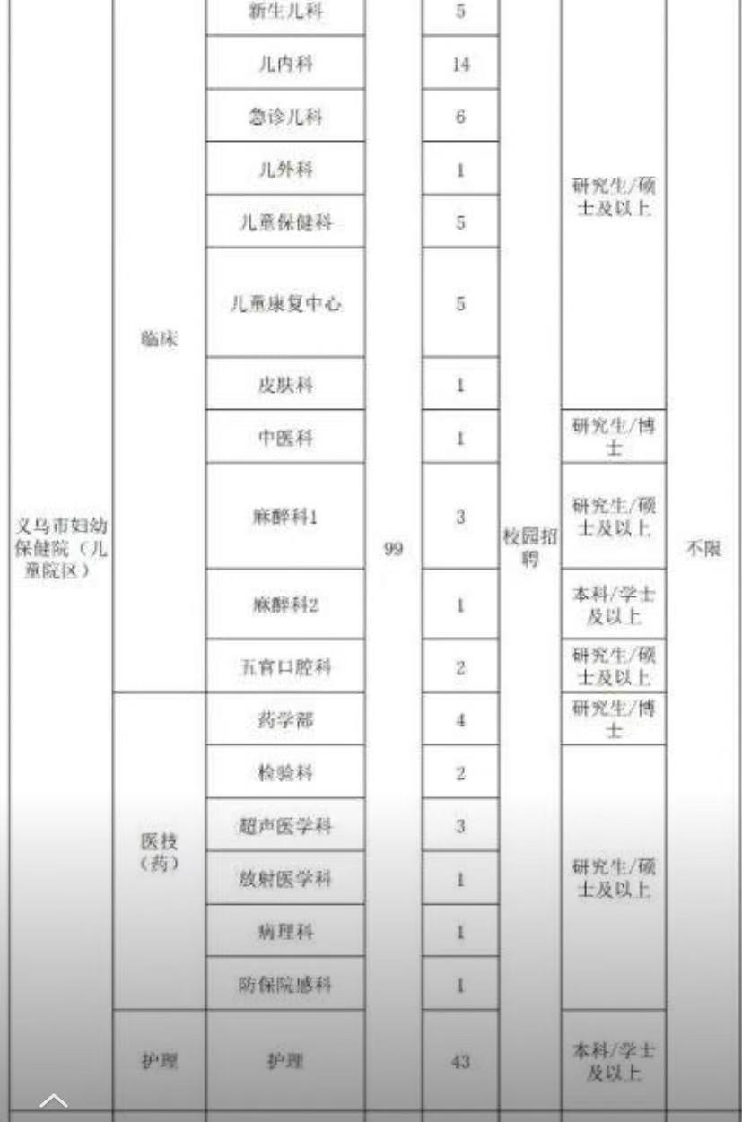 学医儿子读研二,看了离家近的医院今年校招只招康复、保健等岗位,享有事业编制。但是想不通的是,为何不招儿内儿外的医生了? 这个医院不仅离家近,而且是事业单位正式入编。又是今年才正式运营的三甲医院,待遇也还好。 人才招引硕士政府补贴最高30万元,购房一次性补贴40万,还有其他补助等。 儿子当年因一分之差读了临床儿科方向的5+3,这学期刚读研二。我们建议他尽力申博,但是他自己不太乐意读博。 明年就是研三了,这段时间刚好是校招。前几天关注到这所医院去他们学校招聘,明明看到招聘计划表里有招新生儿、儿内科、儿外医生等。 今天找了大半天 ,发现医院官网根本没有看到此类招聘。我也很纳闷,那个招聘难道是我看错了 ?是之前的招聘? 我明明截了图,里面的招聘计划怎么就查不到呢?但是没有适合的,这让我发愁了。 都说儿科医生紧缺好就业,让我真抓狂,明年校招不知有没有适合的岗位。