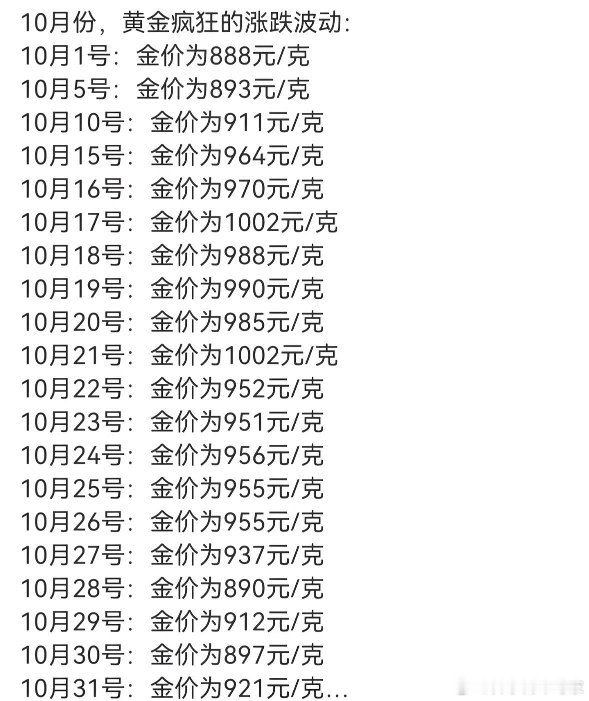 整个10月黄金价格急剧变化,谁也没有能力做到最低点买入,最高点卖出,所以如果不急用钱,那还是建议长期持有