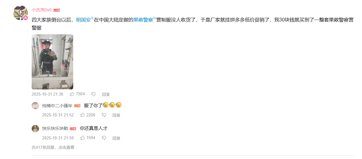 “任何一个军宅都能穿出原品气质的无敌原品”要是明国安还在,我高低也得是个正班级待遇可能拼多多商家理解不了为啥果敢警察营全军覆没两年以后尾单会卖断货,但故事害得从猫爪评论区一个大神级玩家说起。 衣服是B水獭读者送的