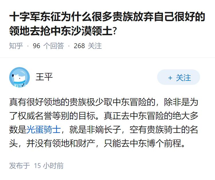 十字军东征为什么很多贵族放弃自己很好的领地去抢中东沙漠领土?
