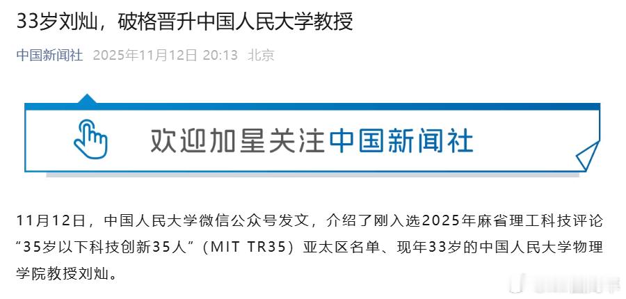 各种神仙级人才辈出,也是现在东大可以动不动掏出世界领先级科研成果的基础。全民教育扩大群众基础教育水平,然后涌现出高质量人才,目前看来还是有成绩的。 刘灿高中毕业于河北正定中学,2014年本科毕业于西北工业大学,2019年博士毕业于北京大学,2019年至2022年通过“博新计划”于北京大学从事博士后研究。2022年,博士后出站的她入职中国人民大学,受聘副教授。2023年,刘灿获批国家自然科学基金优秀青年科学基金项目;2024年,主持国家重点研发计划子课题,任课题组长;2025年,破格晋升教授。发表一作/通讯作者论文30余篇,其中包括Science 3篇、Nature子刊9篇。