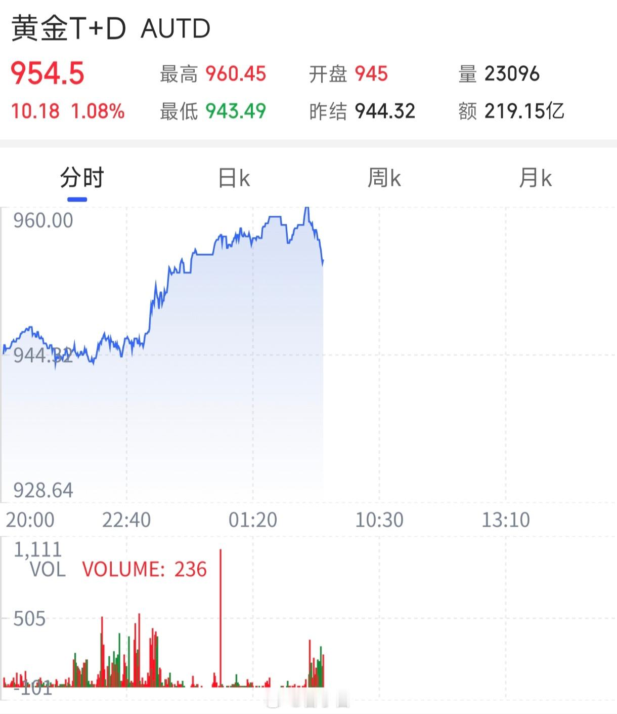 今天一看,国际 金价 直线拉升。国内 黄金 价格都能突破 950 的样子。跌