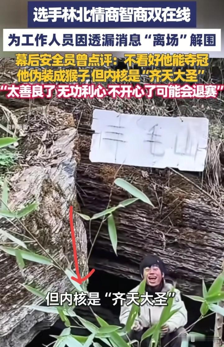 林北之所以备受关注与喜爱, 可能跟他的性格有关吧。在大部分荒野求生的选手都在灰头土脸的求生时,林北还能提供大量的情绪价值,笑嘿嘿的,让看节目的观众都跟着他笑了,真的是妥妥的开心果啊。 这样的他仍然展露出闪光点,跟冷美人一样也是乐观的心态,所以非常想让人知道,最后他们到底能不能在荒野里坚持下来。他情商智商也高,能在荒野比赛里坚持那么久,都不会很差的。