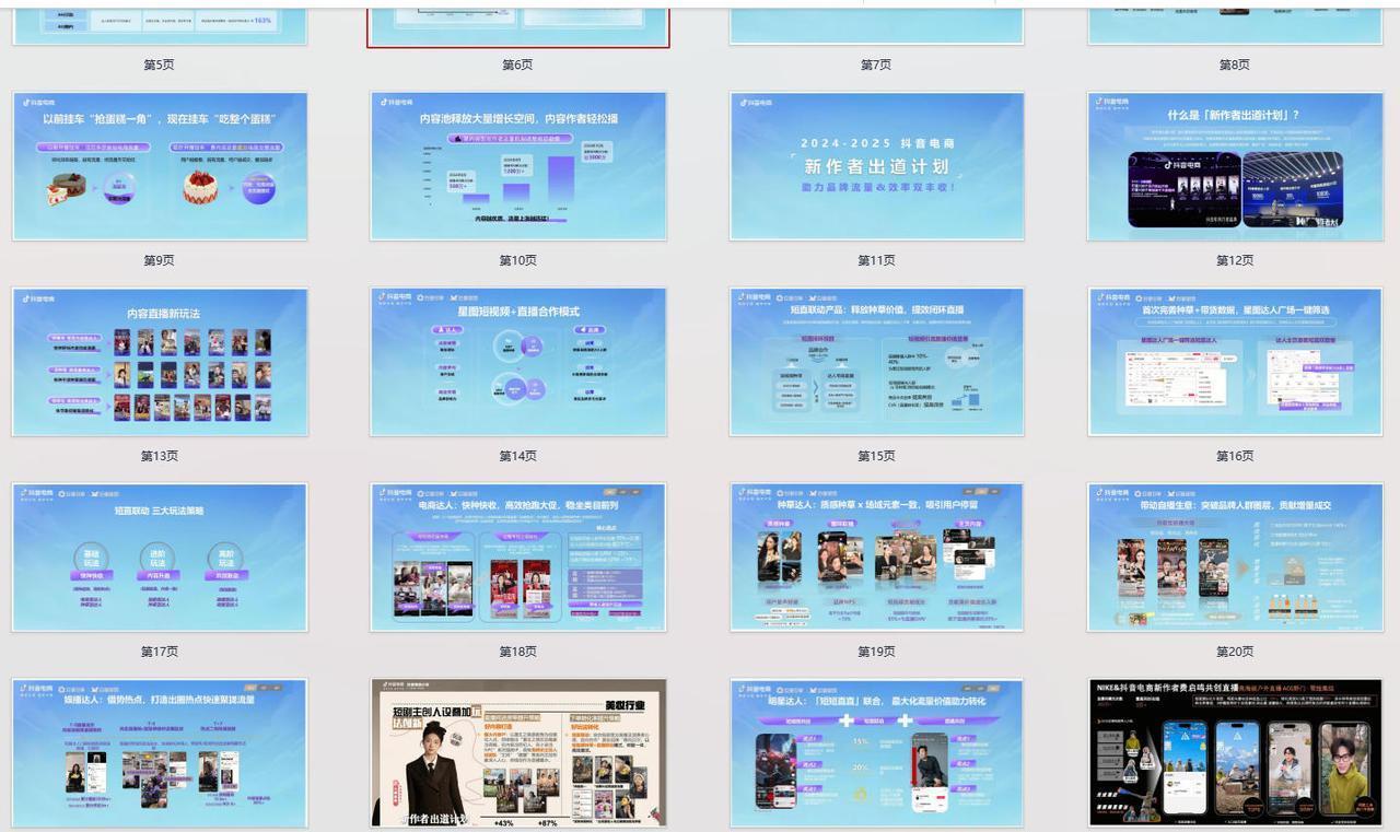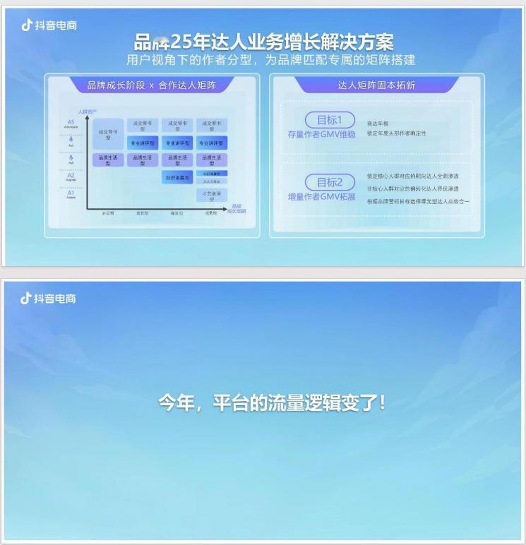 【抖音干货分享】抖音电商达人场品牌生意增长解决方案-PDF 这份抖音电商达人场品牌生意增长解决方案 PDF 的重要性,在于精准破解品牌在达人合作中的匹配低效、转化不足、增长乏力等核心痛点,为品牌搭建从达人筛选、合作落地到数据复盘的全链路体系。其整合了达人矩阵搭建、内容种草策略、流量协同玩法,依托数据支持实现达人与品牌调性精准契合,既能通过中小达人破圈拉新、头部达人强化声量,又能联动货架场景提升转化效率。同时为品牌提供标准化合作流程与风险规避方法,助力沉淀人群资产、降低试错成本,在竞争激烈的抖音生态中快速打开市场,实现品牌影响力与生意规模的双重增长,是品牌布局抖音电商的核心指引。