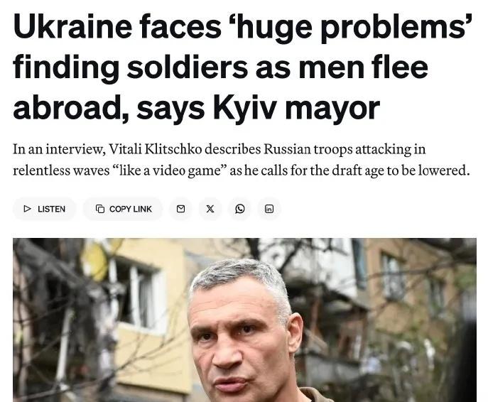基辅市长维塔利·克利奇科再次呼吁将征兵年龄从25岁降低到22岁,以解决兵力短缺问题,“过去,18岁的年轻人就会服兵役,但那是孩子。现在在乌克兰只有25岁及以上才能被动员。可以将年龄降低一两年——降到23岁或22岁。” 克利奇科提出这个建议,确实有原因,不是所有的乌克兰人都愿意保卫自己的国家,据《每日电讯报》报道,在泽连斯基放宽对18到22岁人群的旅行限制后,短短两个月时间里,有将近10万名乌克兰年轻男性离开了自己的国家。 在这个问题上,我个人倒是比较支持乌克兰最高拉达的决议,即征兵年龄下限是25岁,不再因为各种压下而下调,乌克兰需要多留些种子,允许18岁到24岁的年轻人自愿参军,但不强制。