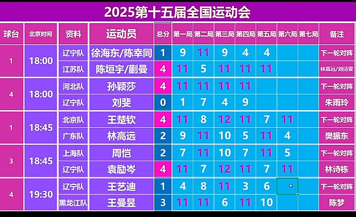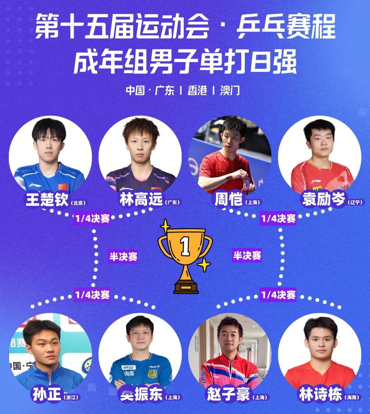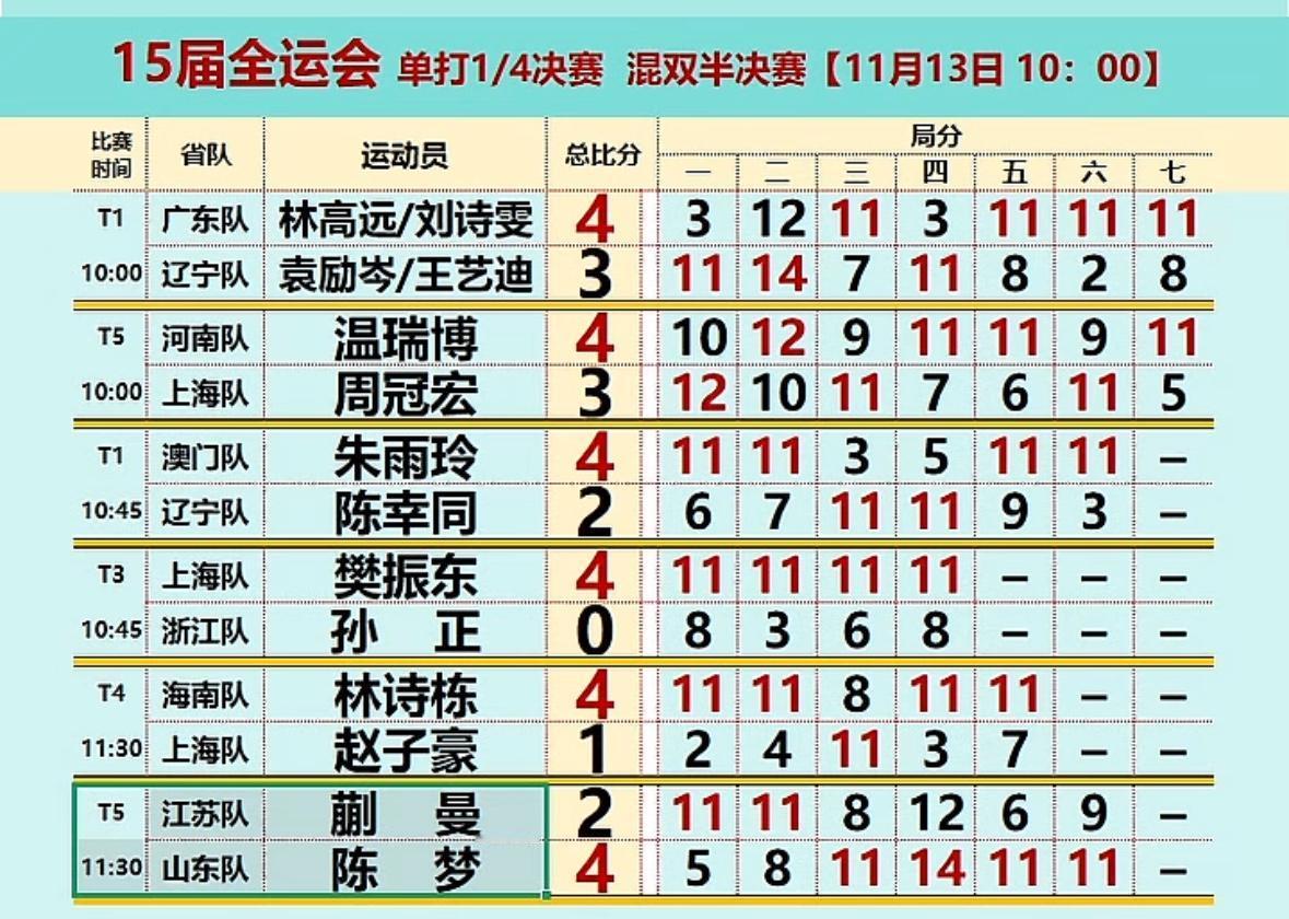 全运会王曼昱4:2王艺迪晋级四强男女单四强全部出炉! 男单四强: 王楚钦VS