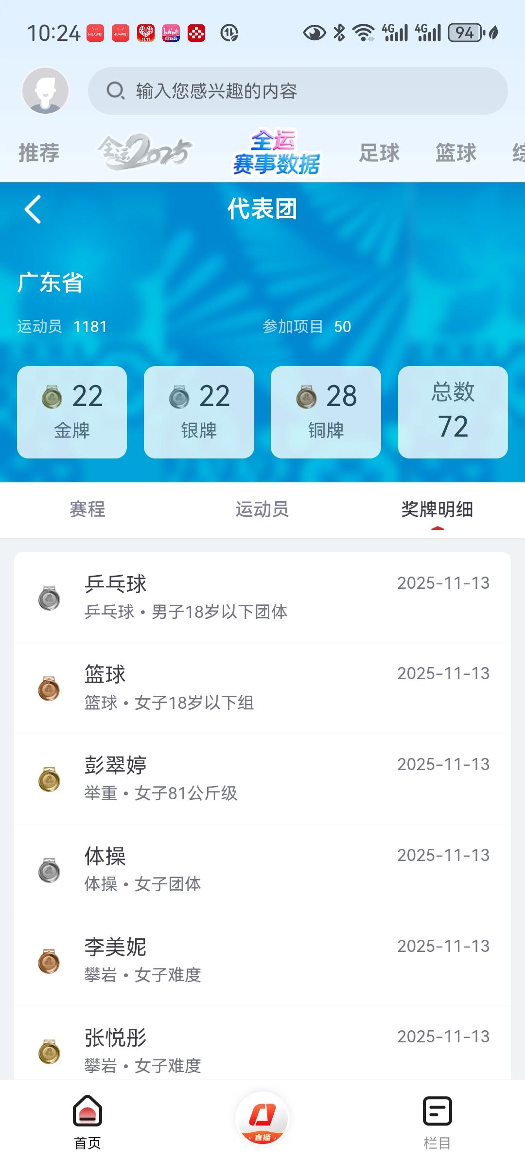 广东基本无缘本届全运会金牌榜榜首了!目前广东以22金22银28铜暂列第二名,山东以26金23银23铜名列榜首。双方的纯全运会金牌数据已经相差4枚。如果加上三大球青少年运动会的数据,则广东是23枚,山东是30枚,差距已拉大到7枚。考虑目前赛程已实际上接近过半,广东要追上只能希望后面的田径能尽可能多拿金牌了。今天广东在乒乓球羽毛球足球体操游泳都是全线败笔,仅靠举重和攀岩拿了两金。我发现我真是毒奶王,今天看啥输啥,没看的反而都赢了[捂脸]