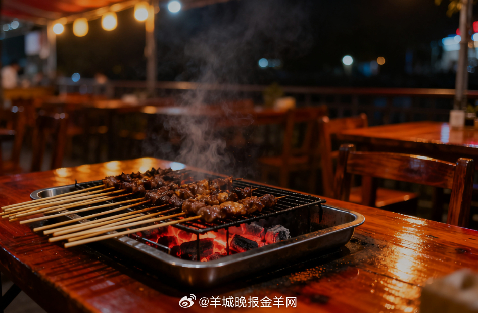 炭火渐弱,烤架上余温袅袅,签子整齐码在铁盘里,暖黄灯光映着油亮的桌椅,晚风带着孜然香,吃饱了再安稳的睡吧~