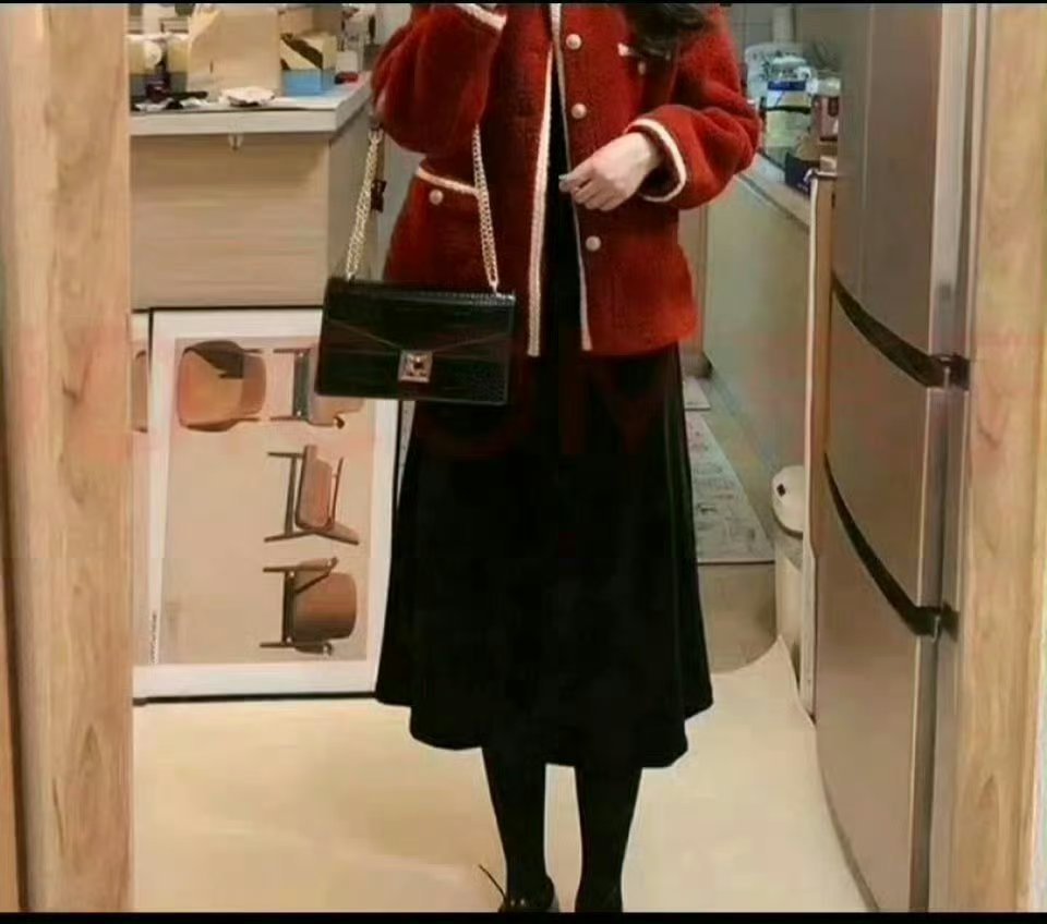 🍁 秋冬氛围感王炸!妍莉芬红黑套装让我每天都想穿出门翻遍衣柜终于找到秋冬“战袍”!妍莉芬这套小香风连衣裙+红色外套的套装,把红黑经典配色穿出新意,穿上瞬间自带精致感,出门被问了好几次链接,真心想按头安利给所有爱美的姐妹~🔴⚫ 红黑撞色:经典永不过时的时髦感谁能拒绝红黑搭配的魅力啊!外套是饱和度刚刚好的正红色,不张扬却超吸睛,面料摸着软软的不僵硬,挺括度在线还不显臃肿。内搭的黑色小香风连衣裙,领口和袖口的精致走线透着小细节,长度到膝盖附近,对小个子超友好。红外套配黑裙子,一整个利落又大气,不管是通勤穿还是约会、朋友小聚都合适。而且红色特别显白,黄皮穿也能衬得气色超棒,拍照自带“打光板”效果,随手拍都是氛围感大片~🧥 厚度&实穿性:晚秋初冬闭眼冲最让我惊喜的是它的实用性!外套厚度适中,不是薄薄一层的“样子货”,晚秋单穿外套配连衣裙就很合适,到了初冬搭个薄毛衣或打底衫,保暖又不臃肿。面料摸着是那种有质感但不生硬的,穿在身上活动自如,不会有束缚感。连衣裙的面料也很舒服,贴身穿不扎人,久坐也不会皱巴巴,一整天下来都保持精致状态,打工人表示太爱这种“省心穿搭”了!✨ 一套搞定所有搭配:懒人福音太香了作为每天早上都要纠结穿搭的“选择困难户”,这套套装简直是救星!不用费心想内搭和外套怎么配,直接一套穿上就能出门,省时又好看。搭配也很灵活,想休闲一点就配小白鞋或短靴,想更精致就踩双高跟鞋,戴个小项链或贝雷帽,瞬间提升整体造型感。自从入了这套,我的秋冬穿搭效率都变高了,每天都能美美出门,心情都跟着变好~