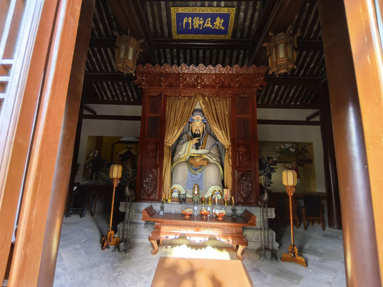 在潍县十笏园西北不远处,藏着一座孔融祠。走进关帝庙大殿西侧小门,便是孔融祠所在的院落,它与关帝庙仅一墙之隔。 孔融是孔夫子二十世孙,“孔融让梨”的故事家喻户晓。东汉时,他在北海(今潍坊坊子一带)做了六年官,被称“孔北海”。《三国演义》里就有刘皇叔北海救孔融的情节。这座孔融祠始建于宋代,是为纪念孔融而建。他性好宾客、喜评时政,却因触怒曹操被杀。如今来此,既能感受历史文化,也能缅怀这位名士。
