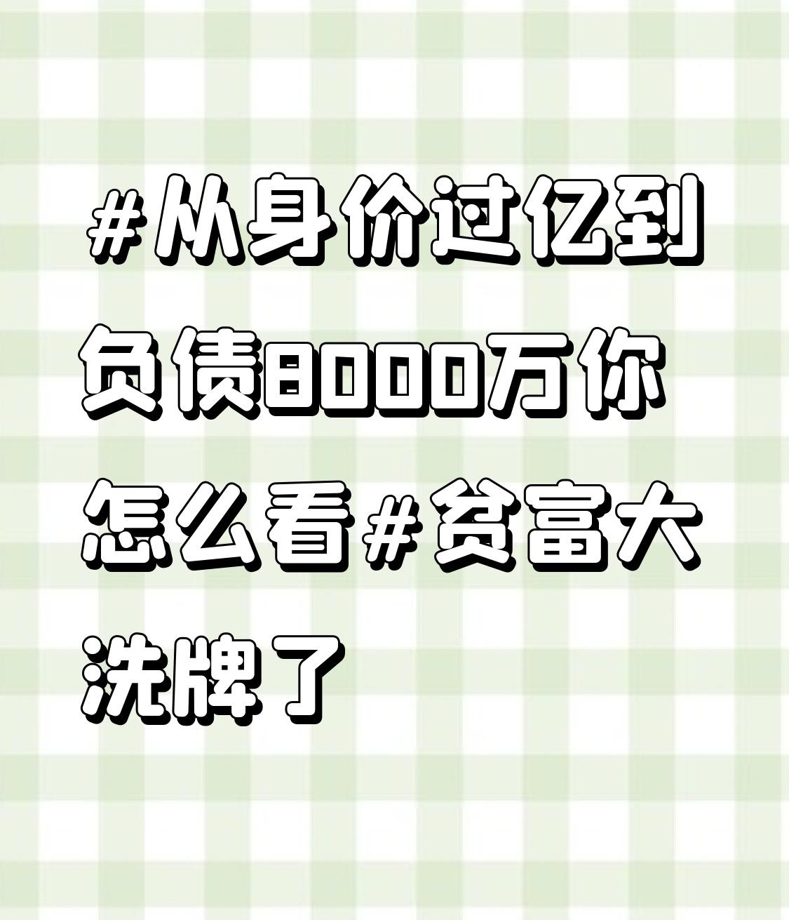 从身价过亿到负债8000万,这种贫富大洗牌太抓马了。就像那个做了30年水果的女老板,曾经资产过亿,疫情一来,生意和投资全败北,负债3500万。还有年轻的亿万富翁周先生,创业开餐厅和影视公司赚了钱,电商创业却折戟沉沙。 这告诉我们,创业有运气成分,红利总会消失,行业走下坡路时得转型或落袋为安,不然凭运气赚的钱真会凭本事亏掉。而且经济不好时,风险管理超重要。人生无常,不能只盯着物质,得有精神追求,有勇气面对挫折,毕竟追求梦想和价值才是生活的意义。