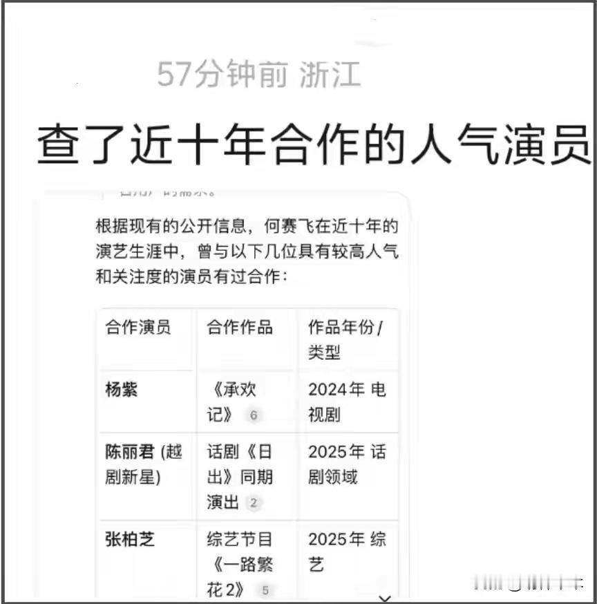 秉承着吃瓜要吃全的精神,搜了下,何赛飞2024-2025拍的剧多了去,为啥不把这些剧列个表格出来,而是就列了你想表达的?
