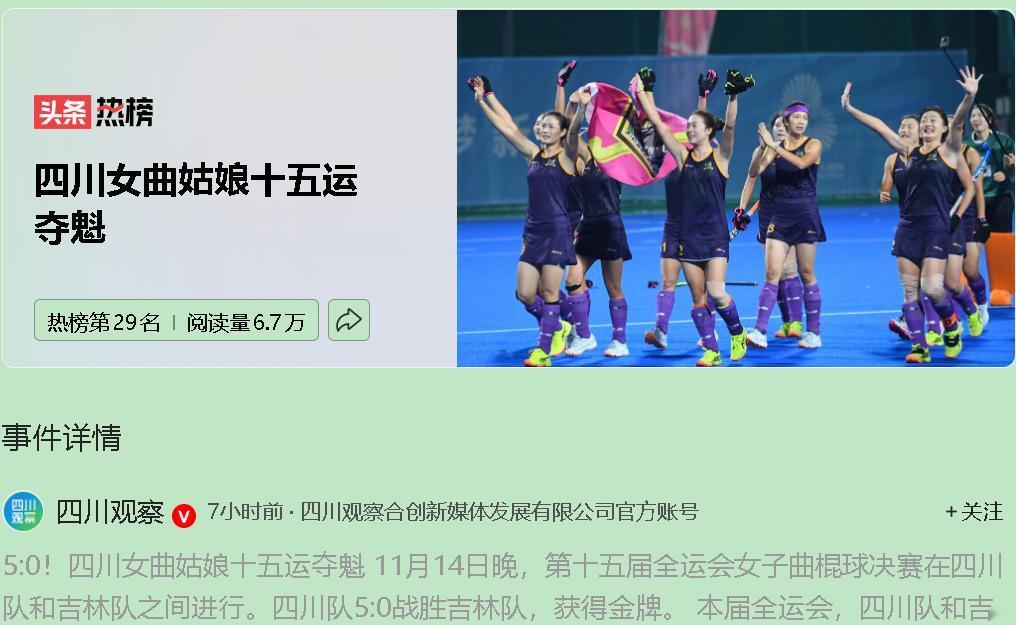 为十五运夺魁的四川女曲姑娘点赞!你们不仅是父母的骄傲,也是四川人的骄傲。 你见过凌晨五点的曲棍球场吗?天还墨黑,冷风刮在脸上像冰刀划过。就在这片漆黑中,一群身影已经开始了日复一日的训练。这就是四川女曲,那支被称为“冰山雪莲”的神奇队伍。 昨晚,她们刚刚捧起全运会冠军奖杯。但文一个人轰进三个球,直接让比分定格在5:0。谁能想到,这支在小组赛还和对手打得难解难分的队伍,到了决赛竟能爆发出如此惊人的能量? 这已经是她们第八年保持不败了。 “每次路过训练场,都能听到球棍撞击的脆响,还有姑娘们急促的呼吸声。”住在基地附近的老李说,“冬天的时候,她们呼出的白气在灯光下特别明显,像一朵朵移动的云。” 这支队伍的故事,要从清晨的训练开始说起。 每周四次,凌晨五点起床。闹铃响起时,被窝里的温暖总是诱惑着再多躺一会。但她们知道,训练场在等待。 主教练黄永生有个原则:全队必须共同完成训练才能结束。哪怕有一个人没完成,所有人都会陪着。这种团队精神,让每个姑娘都咬牙坚持着。 “记得有次冬天,我的手冻得握不住球杆。”队员小王回忆,“是队友们的手掌帮我暖回来的。那种温暖,从手心一直传到心里。” 目前国家队里,有10名队员来自四川女曲。巴黎奥运会上的那枚银牌,背后是这群姑娘在清晨寒风中一次次挥杆的身影。 “走下领奖台,一切从零开始。”队长欧紫霞这句话,道破了她们八年不败的天机。没有永远的胜利,只有不停歇的脚步。 明天清晨五点,闹钟会再次响起。她们又将迎着第一缕晨光,走向那片见证过无数汗水的场地。而这朵“冰山雪莲”的故事,还在继续绽放。 你知道她们为什么能赢吗?因为当别人还在梦中时,她们已经在为梦想而战。