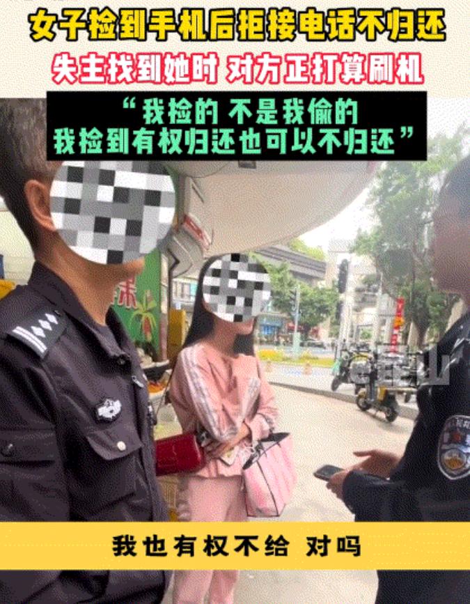 “无知者无畏!”广东广州,一失主手机不慎丢失,电话沟通后,发现被一名女子捡到,但对方却拒绝归还,报警后找到女子时,她正在网吧刷机,最离谱的是,面对民警,女子理直气壮地表示:这是我捡的,我有权不还! 根据中安在线报道,广东一家网吧里曾发生过一场让人啼笑皆非的争执。 两名警察陪着一位女失主走进网吧,失主径直走到一台电脑前,指着桌上正在充电的手机说这就是自己丢的。 电脑前坐着个穿粉色衣服的女子,看到警察瞬间就紧张地站了起来,可等警察问她是不是捡了别人手机时,她又装起糊涂,低头看着自己的手机假装没听见。 失主急着解释,说自己之前给手机打过电话,对方也接了,可没说两句就挂了,之后联系归还的事也没下文,没办法才报了警,还听说对方要偷偷给手机刷机。 警察拿起充电的手机看了看,发现有密码,失主立刻说自己能解开,以此证明手机是自己的。 这话刚说完,穿粉色衣服的女子赶紧拎起旁边的包,看那样子是想趁机溜走,被失主当场质问时,她才支支吾吾提议换个地方说。 被失主戳穿是觉得丢脸后,她立刻翻了脸,大声说手机是自己捡的,又不是偷的。 因为担心网吧出现混乱,民警决定带两人到外面协调。 可刚走出网吧下楼梯,之前还刻意回避的粉色衣服女子突然反过来指责失主在网吧里说话声音太大,让她下不来台。 到了路边的空旷地带,民警耐心向女子说明情况,强调如果手机确实是对方丢失的,依法应当返还。 不料这番劝说却让女子更加不服气,她理直气壮地向民警辩解,反复强调手机是捡来的不是偷的,还抱怨失主刚才态度不好。 女子的逻辑彻底激怒了失主,失主明确表示如果拒不归还,会通过法律途径起诉其侵占他人财物。 让人意外的是,女子对此毫无惧色,突然上前从民警手中一把夺过手机,大声挑衅让失主尽管去起诉,自己根本不怕。 民警见状试图拿回手机,却被女子用力躲开,她甚至对着民警强调“别碰”,坚持要让失主去走法律程序。 甚至还反问民警说:“这是我捡的手机,我有权不还,不是吗?” 女子握着手机,要求失主必须用更温和的态度沟通,全程没有一丝一毫认识到自身行为错误的样子。 梳理女子从捡手机到被找到后的一系列举动,能清晰看出她从一开始就没打算将手机归还失主。 接通失主电话后刻意挂断、对协商置之不理,之后特意跑到网吧准备强制刷机,目的就是清除手机内的所有原有信息,让这部手机彻底变成“无主之物”据为己有。 被找到后,她先后采用装糊涂、试图逃跑、转移沟通地点等方式回避问题,被戳穿后又拿失主态度当挡箭牌,甚至敢在民警面前抢夺手机。 这一系列行为的背后,是对法律规定的全然无知,法律意识的淡薄到了惊人的地步。 生活中不少人可能都有类似的错误认知,觉得捡来的东西只要不是偷来的,就可以自由支配,想还就还不想还也没人能管。 但我国法律早已明确界定了拾得遗失物的责任,拾得人对遗失物负有妥善保管的义务,当失主前来认领时,必须返还。 像这位女子这样,不仅明确拒绝归还,还通过刷机试图毁灭物品归属证据,一旦经鉴定手机价值达到法定标准,就可能构成侵占罪,届时除了必须返还手机,还可能面临刑事处罚。 同时,刷机行为会泄露或删除手机内的个人信息,还涉嫌侵犯失主的隐私权。 现在还有人认为,捡东西不还顶多是道德上的瑕疵,不会上升到违法层面,这种认知无疑埋下了巨大的风险。 就像这位粉色衣服女子,倘若一开始就痛快归还手机,不过是举手之劳,顶多被失主感谢。 可她偏偏选择一再硬扛,从回避问题到公开抢夺,一步步将自己推向违法的边缘,真要是被起诉,最终只会得不偿失。 这起事件也给所有人提了个醒,捡到他人财物千万别心存侥幸,及时联系失主或交由警方处理,才是既守住道德又不碰法律红线的正确做法。