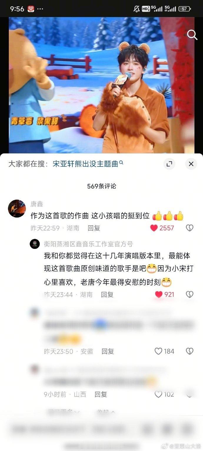 宋亚轩歌声获原创者权威认证,《熊出没》主题曲作曲者公开夸赞其唱得挺到位,完美驾驭