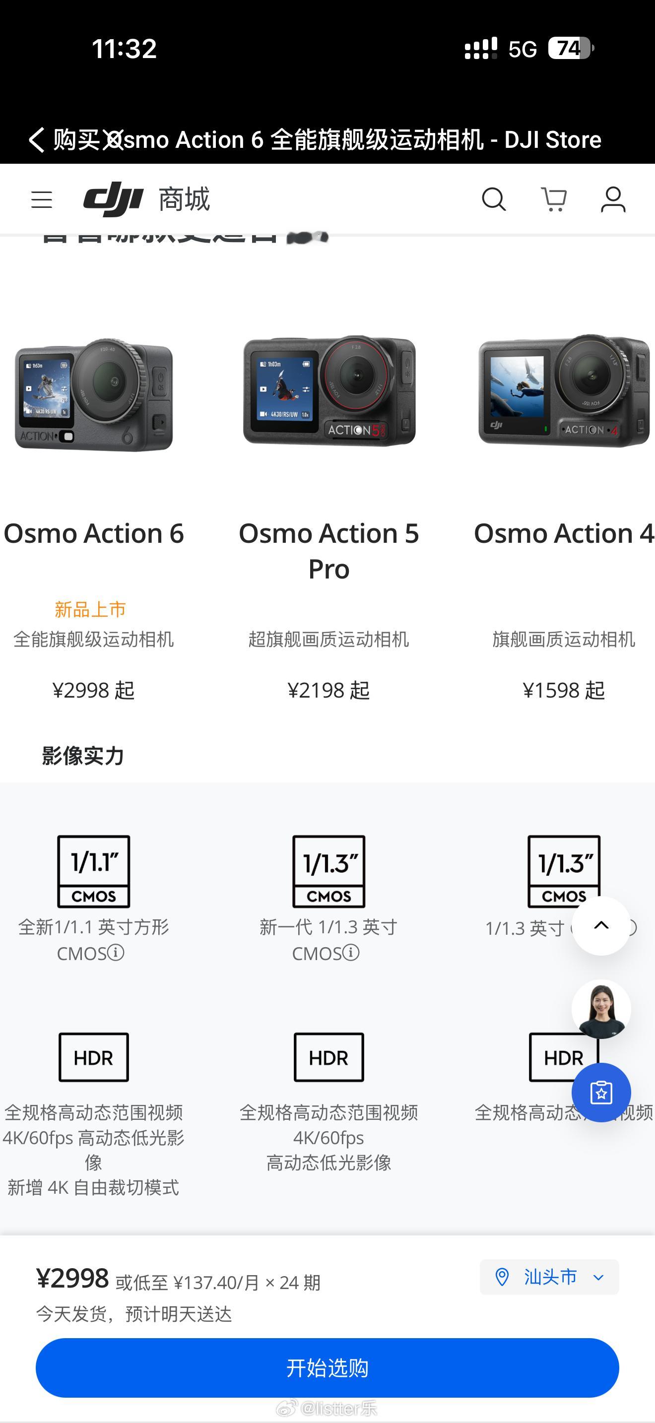 大疆Action 6发布,售价3千块钱,主打一个可变光圈和1/1.1英寸传感器,定位全能旗舰。
