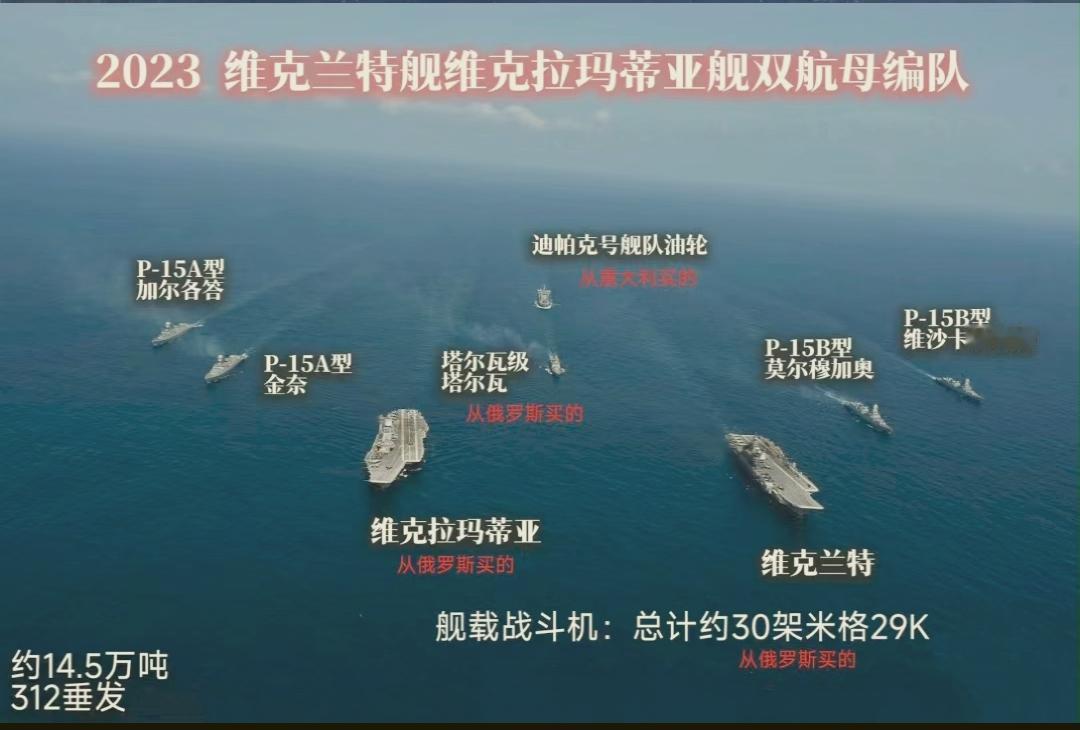 对比看一看中印双航母编队,中国的总吨位约29.5万吨,688个垂发。印度的总吨位约14.5万吨,312个垂发。这就是印度能拿得出手的海军主力舰艇了,相当一部分还是国外采购的。 印度海军目前拥有两艘现役航母:维克拉玛蒂亚号2013年服役,维克兰特号2022年服役。这两艘4万吨级的中型航母,承载着印度"控制印度洋"的大国梦想,两艘航母可实现"东西海岸分兵"的战略,一艘在西面镇守阿拉伯海,一艘在东面镇守孟加拉湾。 印度想的倒是挺美,印海军总共拥有40多架米格-29K/KUB战机,还需要在两艘航母间分配部署,两艘航母最多只能同时部署12-16架米格-29K,远低于航母的战斗力需求,舰载机数量严重不足,国产“光辉”又难堪大用。 重点是这两艘航母都没有安装挡焰板,在起飞作业时,战机后方不能停放其他飞机,这个数量的舰载机反而刚刚好。 印度的两艘航母,如同这个国家的缩影一样,怀揣着"有声有色大国"的梦想,却在现实的礁石上撞得头破血流。 对印度而言,航母不是"必需品",而是一种昂贵的"奢侈品"。在可预见的未来,这两艘航母仍将是印度海军的"门面担当"! 中国就不用多说了,图上的有一个算一个,都成了“牛夫人”,这要是放在印度,那可都是“小甜甜”啊!