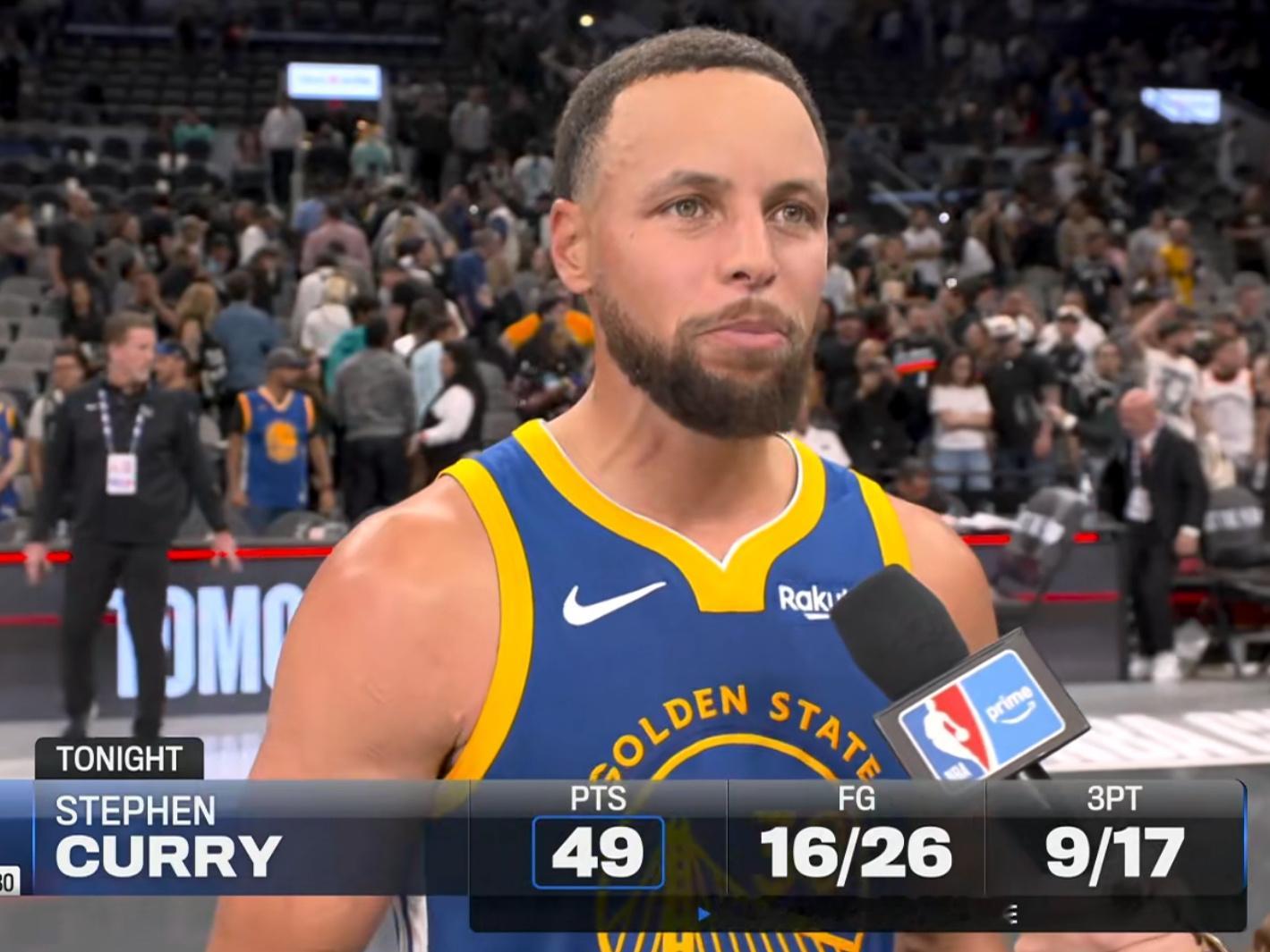 勇士连胜马刺,库里连续两场轰出95分。46分5篮板5助攻49分4篮板2助攻最后库里连进三分,马刺开始从半场包夹,库有引力让队友们开始有更多机会,也确实都投进了,最后库里杀伤罚球反超比分。好梦幻好神奇的比赛!