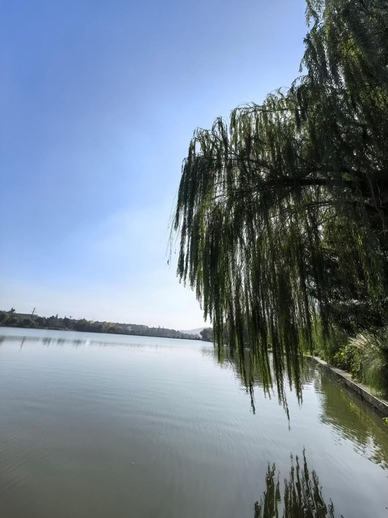 晒图笔记大赛秋天里,天蓝水清,地绿居佳,杨柳垂垂风袅袅,真是岁月静好。