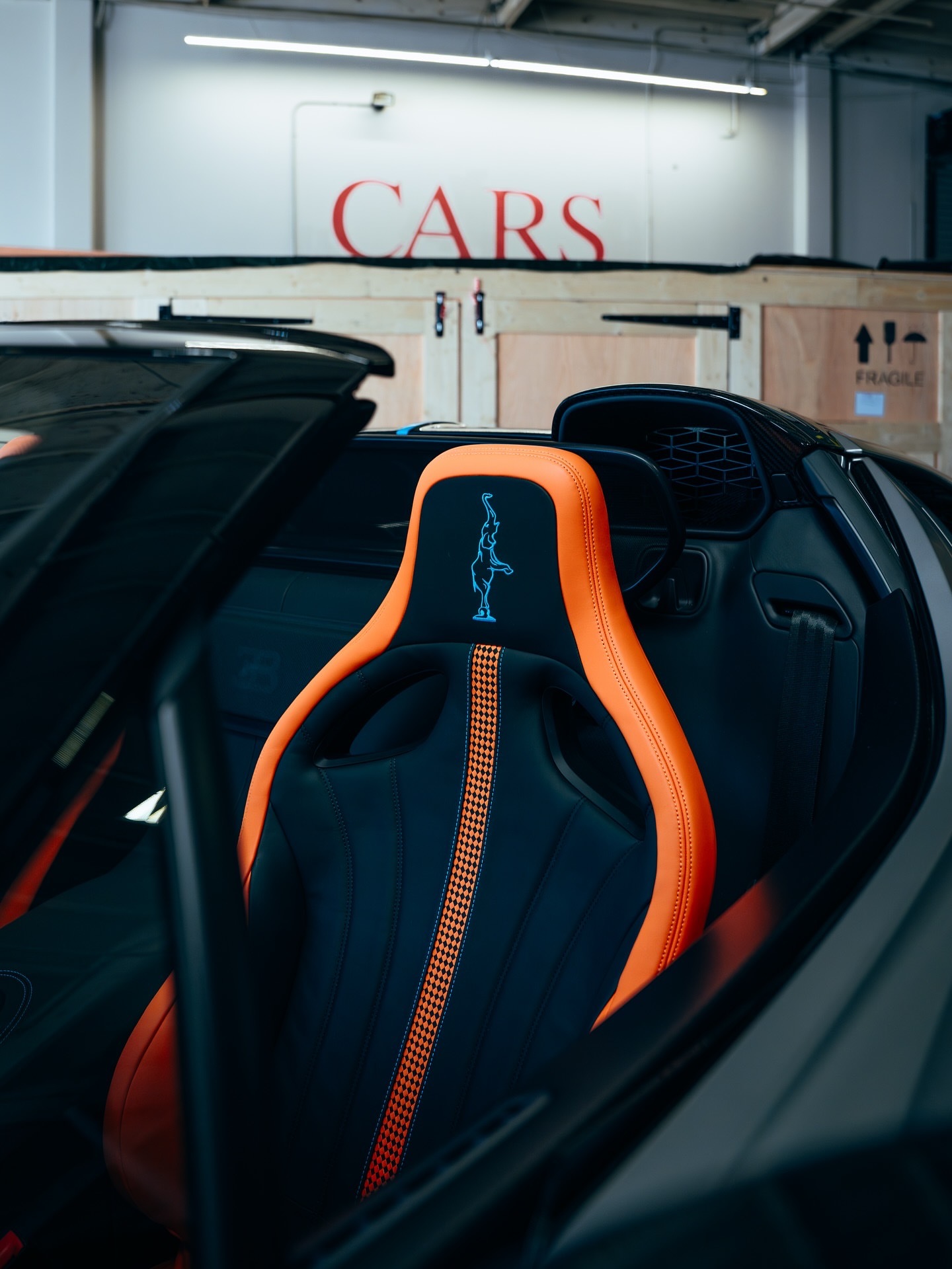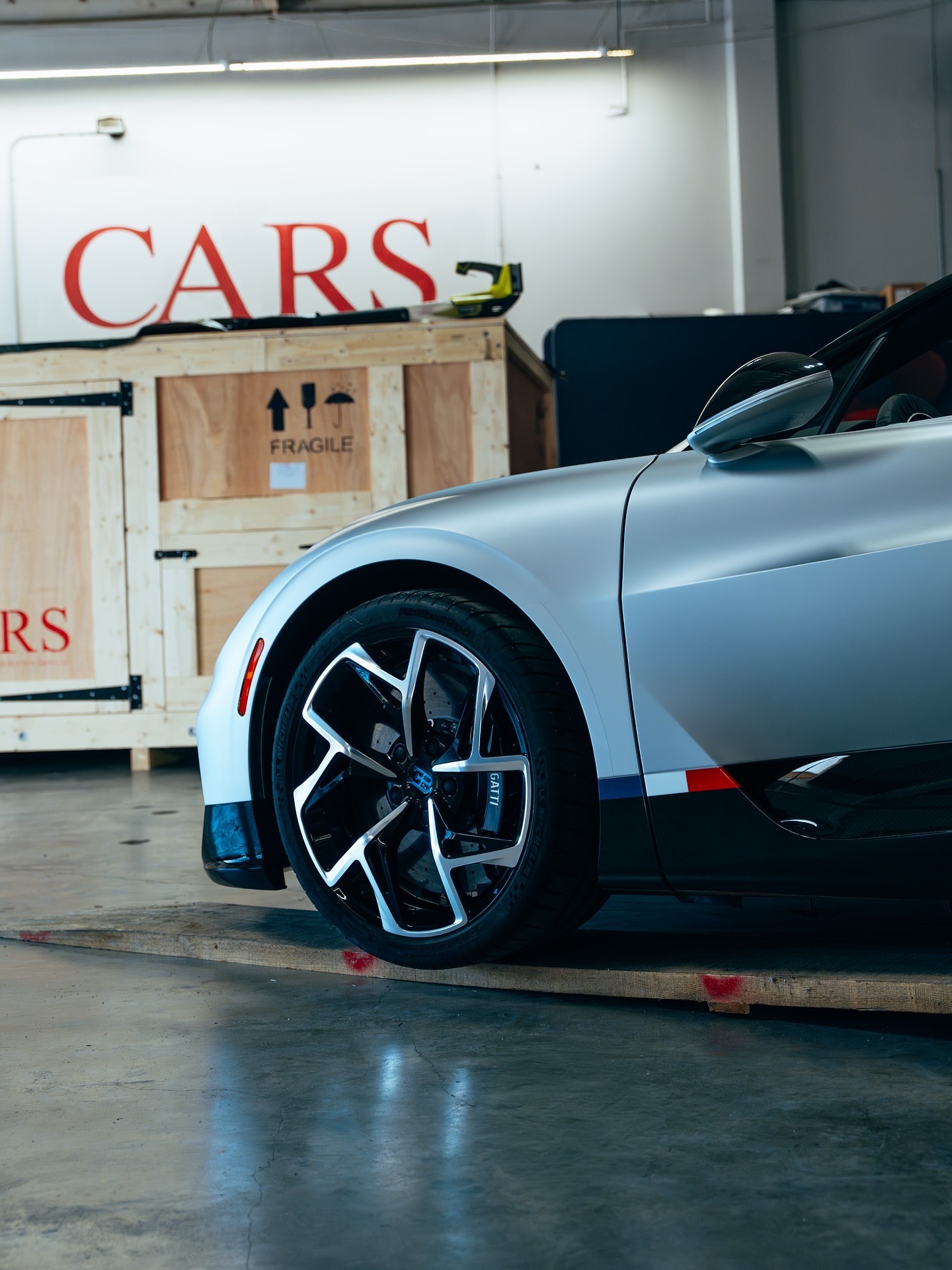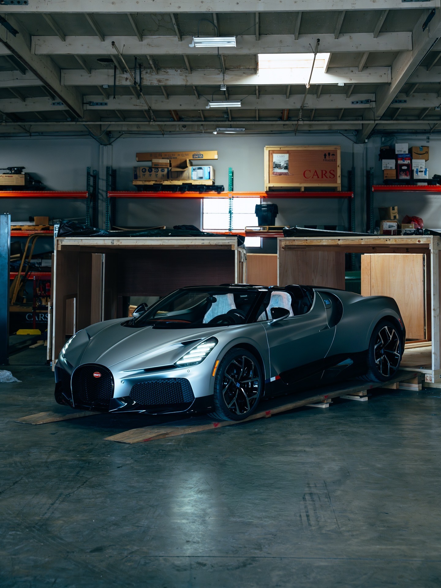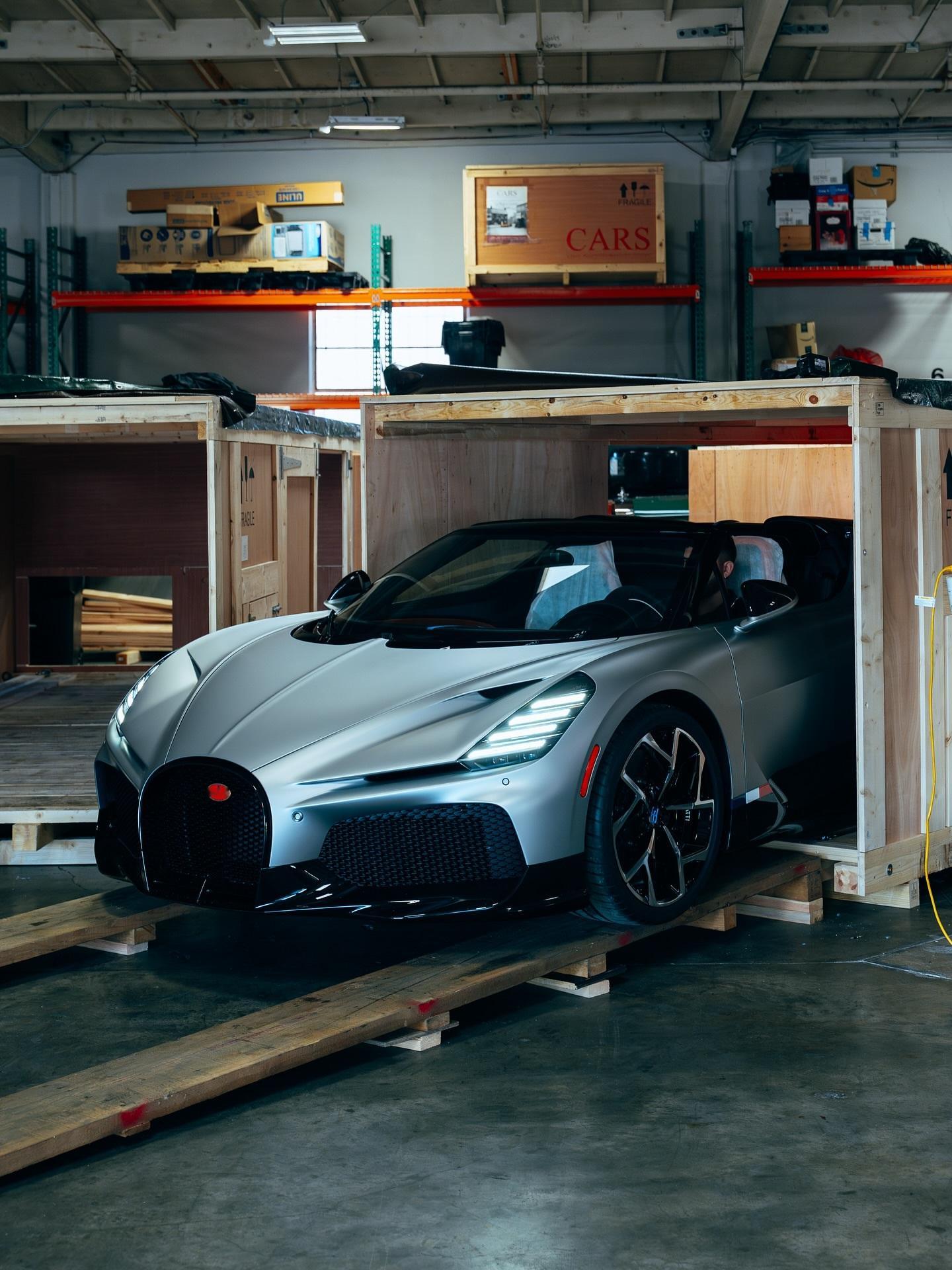 海外一处的开箱并交付——布加迪Mistral M7.046。全球仅99辆的其中一辆,这款敞篷杰作以引人注目的「哑光银色」和「裸露碳黑」外观搭配蓝色装饰呈现。车内,大胆的橙色调内饰与皇家蓝色皮革装饰完美搭配,展现了布加迪无与伦比的工艺和对细节的关注。W16性能的最后一款表达——也是我们荣幸能够交付的最非凡订单之一。