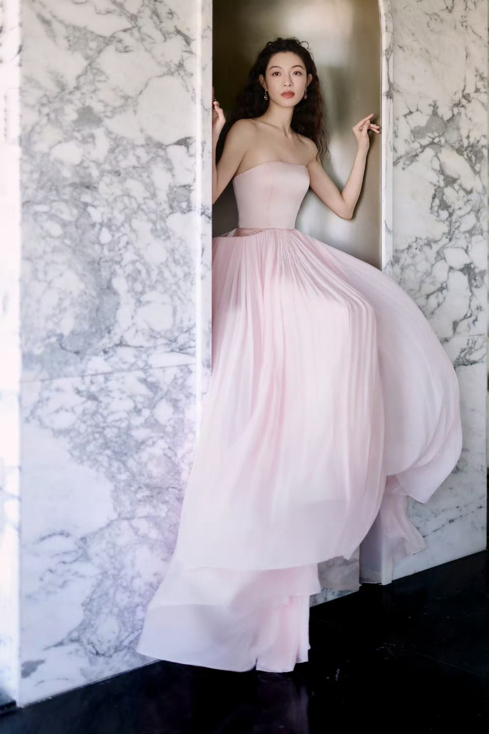 刘亦菲把死亡玫粉穿出了定制款的感觉,这种颜色普通人穿上分分钟黑三度,她居然能穿出