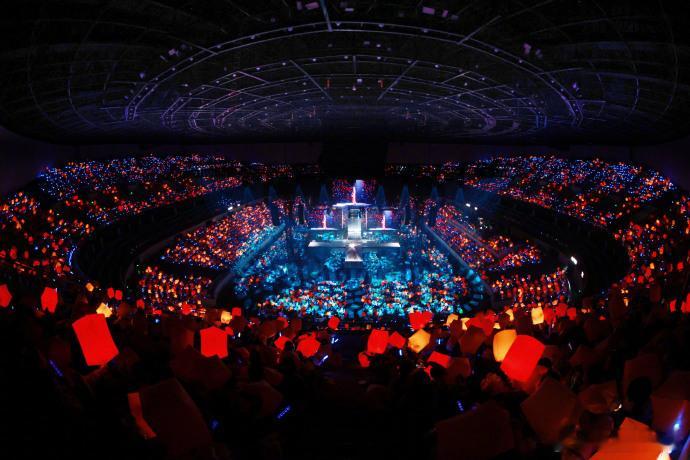 李宇春西安演唱会现场,万盏孔明灯宛如夜空精灵。同时点亮时,场馆被暖黄温柔包裹,观众脸上期待与笑意,皆成最美风景!