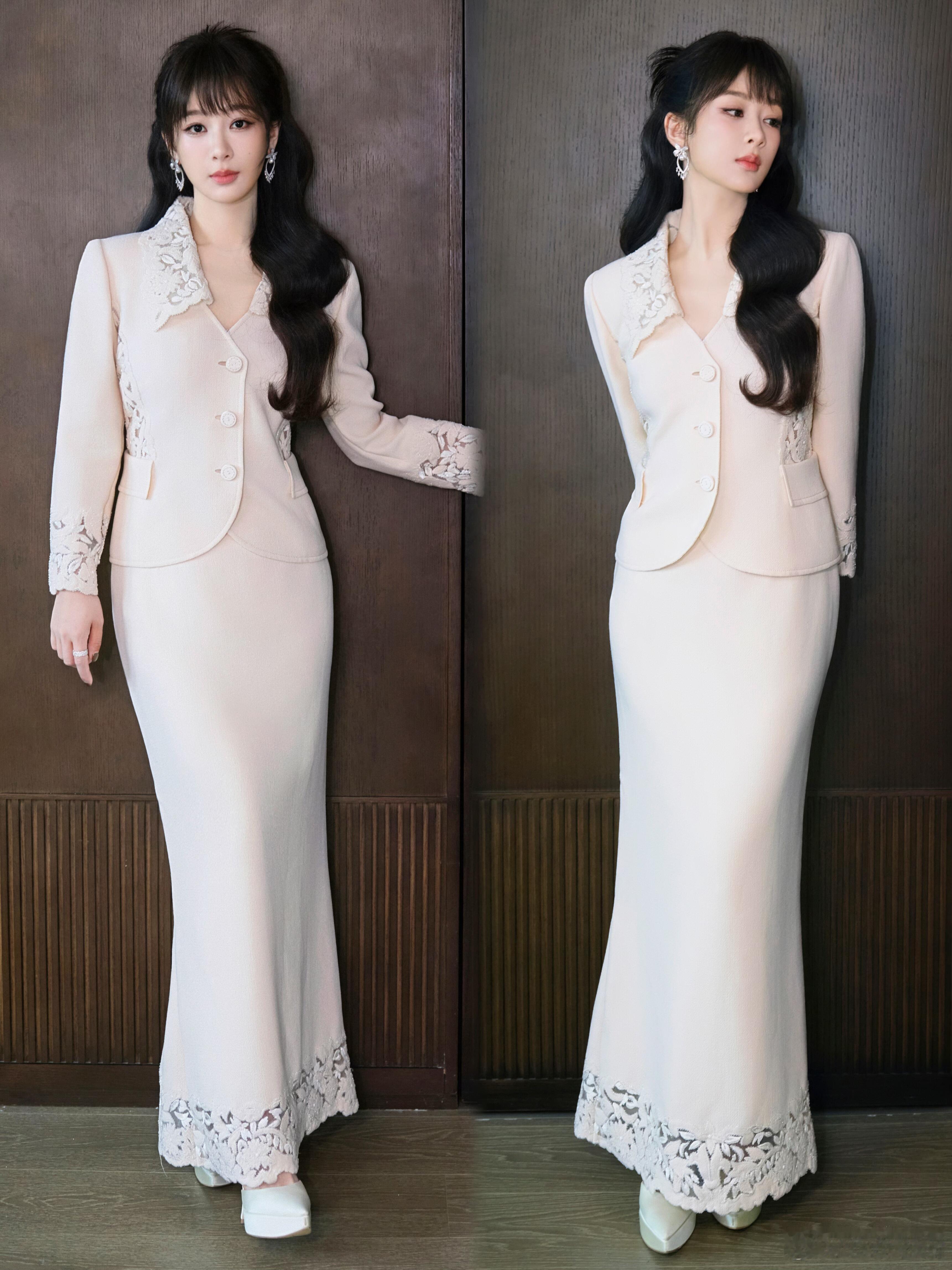 刘亦菲把死亡玫粉穿出了定制款的感觉,这种颜色普通人穿上分分钟黑三度,她居然能穿出