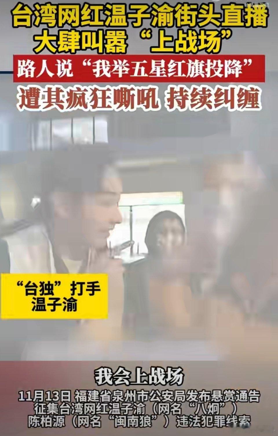 把这个说上战场的台湾网红给记好了。像这样的台独强硬分子必须要予以严惩。