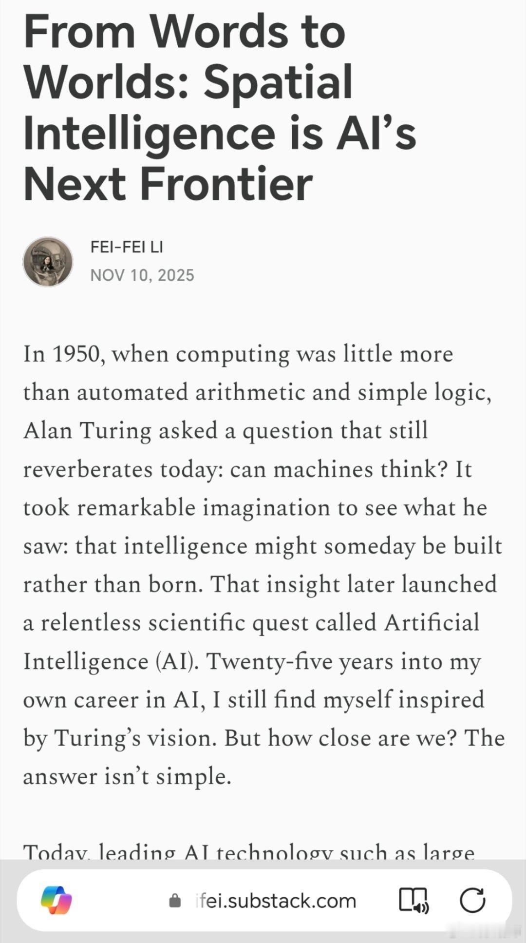 在机场最适合静心读一些之前收藏起来的文章,比如李飞飞教授这篇关于空间智能的长文。话说空间智能Spatial Intelligence这个命名真好,之前很多人说世界模型,就很容易有歧义,这说的是可以模拟出一个世界的模型?(像Minecraft)还是可以生成栩栩如生的视频的模型?(印象中Sora是第一个用上世界模型这个概念的)亦或是可以跳过文字理解物理规律的模型?“空间智能”就很明确是第三个,这也是我们在自动驾驶或辅助驾驶上真正需要的。这概念明确之后,空间智能相比VLA的优势就显而易见了。我们人类在开车时并不知道前方各个物体的准确距离和相对速度,也不会有“因为…所以…”这样的思考过程,完全就是凭借我们的空间智能准确地做出反应。因为像VLA那样的话就太慢了,都没想清楚就撞车了但这也不是说空间智能就是比VLA更好更先进的,这两种技术其实是可以互补的。比老司机开车时的防御性驾驶技巧,那就是VLA式的,掌握更多信息,通过想象做未来推演,提前指定预防性动作。所以我觉得自动驾驶接下来应该是把空间智能(真·车端世界模型)和VLA结合,可能最快在明年初大家就可以见到智驾的能力又一次飞跃