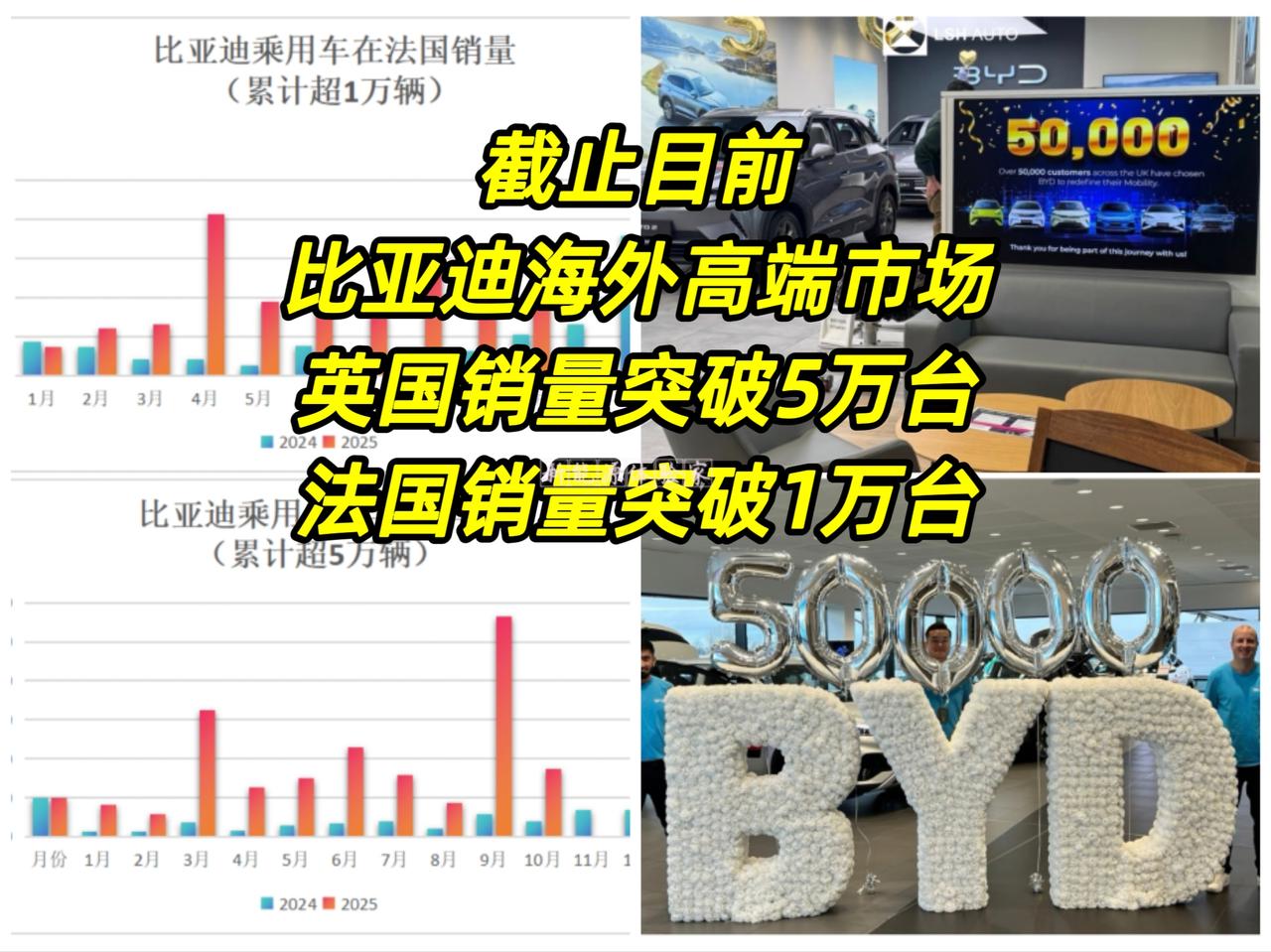 截止目前 比亚迪海外高端市场 英国销量突破5万台 法国销量突破1万台