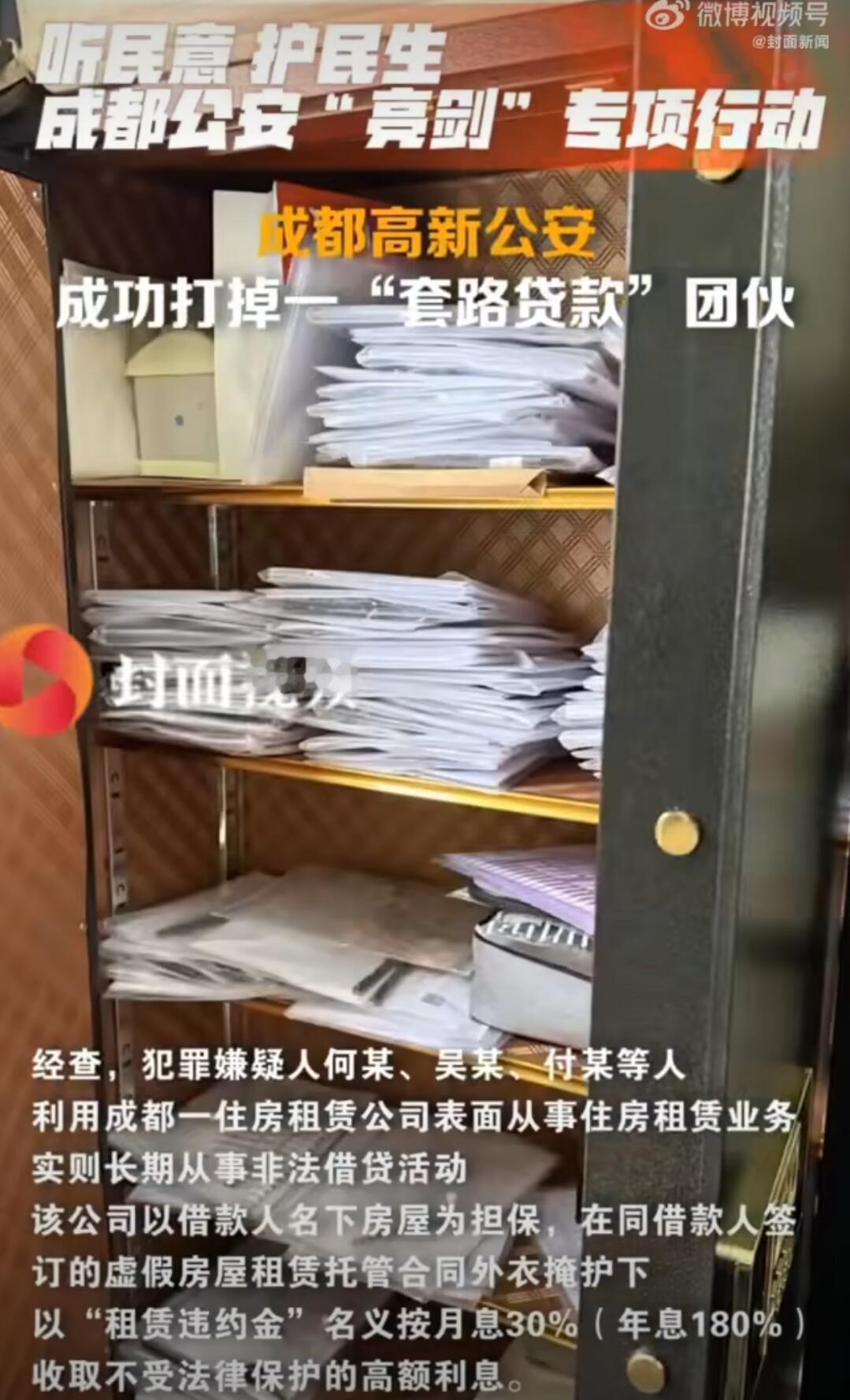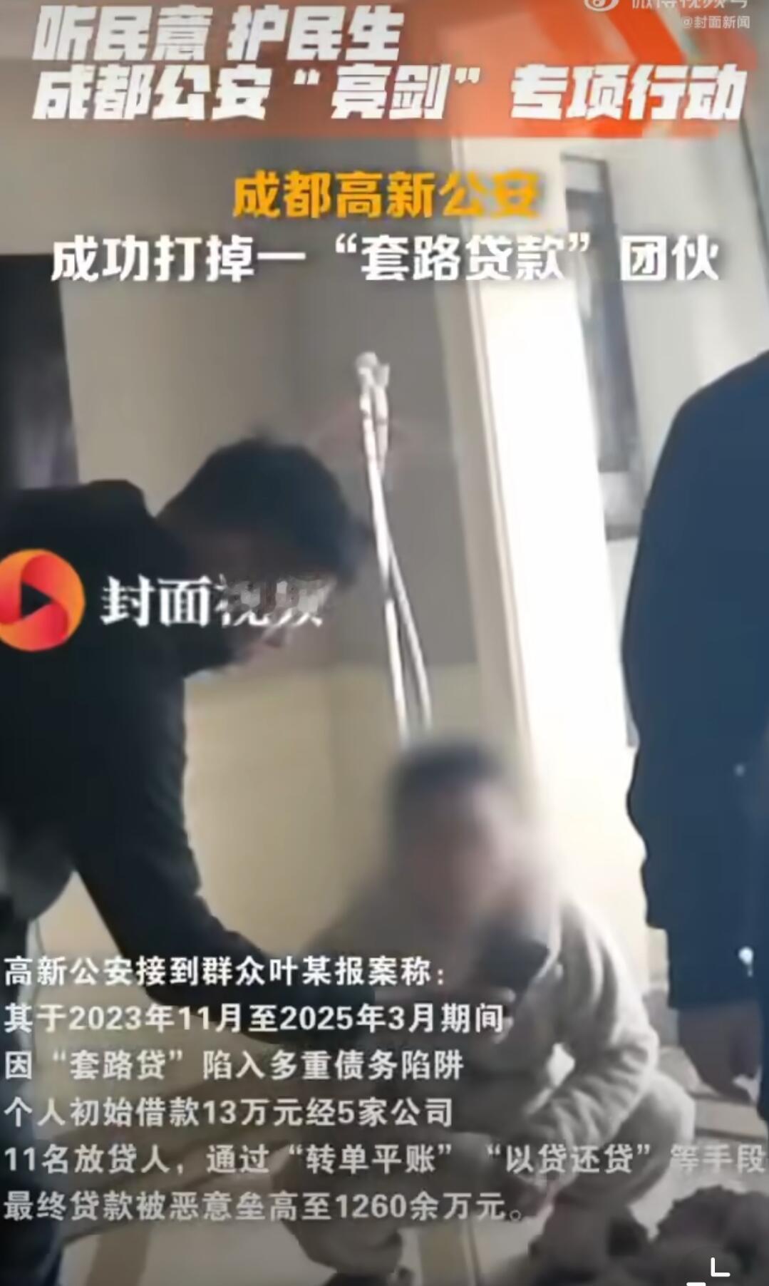 成都最近爆出个“套路贷”案子,真是把人看得血压飙升。 有老哥当初就借了13万应急,结果利滚利,在一年多的时间里硬是被滚到了1260万。这可不是印钞,这是吃人啊。警方一查,背后是个专门搞非法放贷的团伙,他们搞了家住房租赁公司打掩护。他们专找那些名下有点房产,但又急需用钱的人下手。 这帮人的手段非常阴险: · 合同做局:不跟你签借贷合同,而是弄个假的房屋租赁托管合同,然后把高得吓人的利息,包装成所谓的“租赁违约金”。他们敢收到月息30%,年息180%,这远超法律保护的利率上限。 · 以贷养贷:等你一开始还得上几千块的利息时,他们突然把利息涨到几万,让你还不起。然后假装好心,把你介绍给新的“放贷人”,让你借新还旧。其实就是“转单平账”、“以贷还贷”,债务像雪球一样越滚越大。叶某就是这样,从最初的13万,在5家公司、11个放贷人手里,最后背上了1260万的债。 · 暴力催收:还不上?他们就暴力催债,逼得你不得安生。 这案子牵扯了200多名受害者,涉案金额高达4900多万。好在天网恢恢,这个团伙最近被成都高新公安端了,5个主要嫌疑人被抓。 说点实在的,怎么尽量避开这种坑? 1. 急用钱也别乱投医:看到“无抵押、快速放款”的广告多留个心眼,越是说得天花乱坠越要警惕。 2. 合同看清楚再签字:别管对方催得多急,一定要逐字逐句看合同。如果合同内容和说的不一样,比如明明是借钱却签租赁合同,立刻掉头就走。 3. 算清实际利率:记住,法律保护的年利率是24%以内;超过36% 的部分,你可以不还。别被“低日息”、“仅收少量服务费”这种话术骗了,把所有费用都算进去,看看真实成本到底有多高。 4. 找正规渠道:银行或者有正规牌照的金融机构,利息透明,手续规范,虽然可能慢点,但安全。 希望这些吃人血馒头的家伙都能被严惩。大家也多留个心眼,保护好自己的钱包。