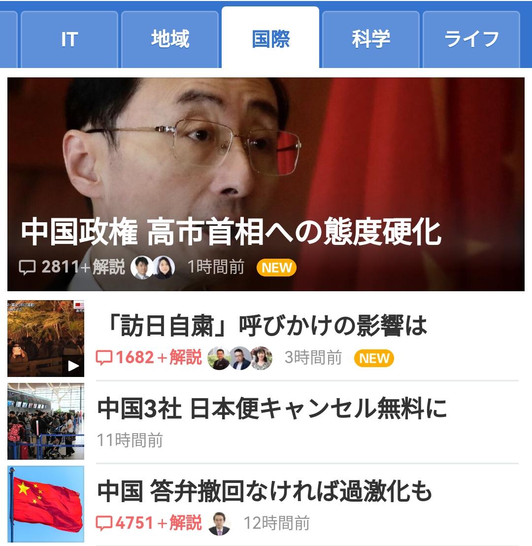 高市早苗一番作态遭遇我们强硬的警告后,中日关系成为日本顶流话题,Yahoo日本的