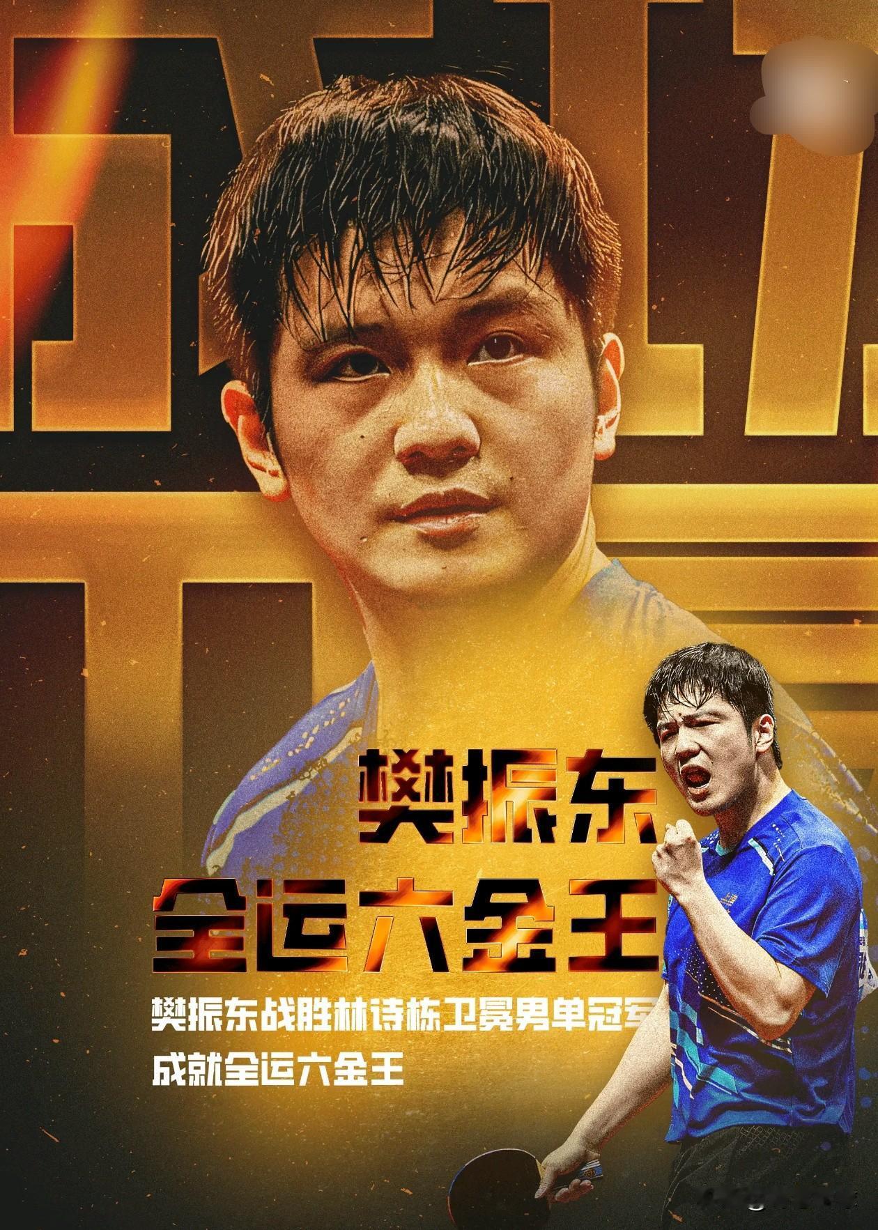 全运六金王!樊振东4-1逆转世界第二,成马龙后男单卫冕第二人 全运会乒乓球男单决赛燃爆澳门赛场!樊振东4-1力克世界第二林诗栋,成功卫冕男单冠军,将个人全运金牌数定格在6枚,刷新现役选手纪录 !这场新老王者对话,堪称中国乒坛最高水准对决。 比赛首局就上演过山车剧情,樊振东4-9落后时展现“大心脏”,连追7分11-9逆转翻盘。尽管林诗栋以11-8扳回一局,尽显00后猛将锐气,但樊振东随后完全掌控节奏,11-5、11-3、11-4连下三城,用无解稳定性终结比赛 。 作为全运会史上继马龙后第二位男单卫冕者,樊振东四次参赛四次闯入男单决赛,12战全胜保持不败神话。这座金牌含金量十足——要知道全运会被誉“比世界冠军难拿”,刘国梁、张继科等传奇都未曾卫冕 。 林诗栋单枪匹马代表海南队出战,虽败犹荣,但樊振东用第六金证明,国乒一哥的统治力依旧无可撼动!樊振东全运六金王 国乒巅峰对决