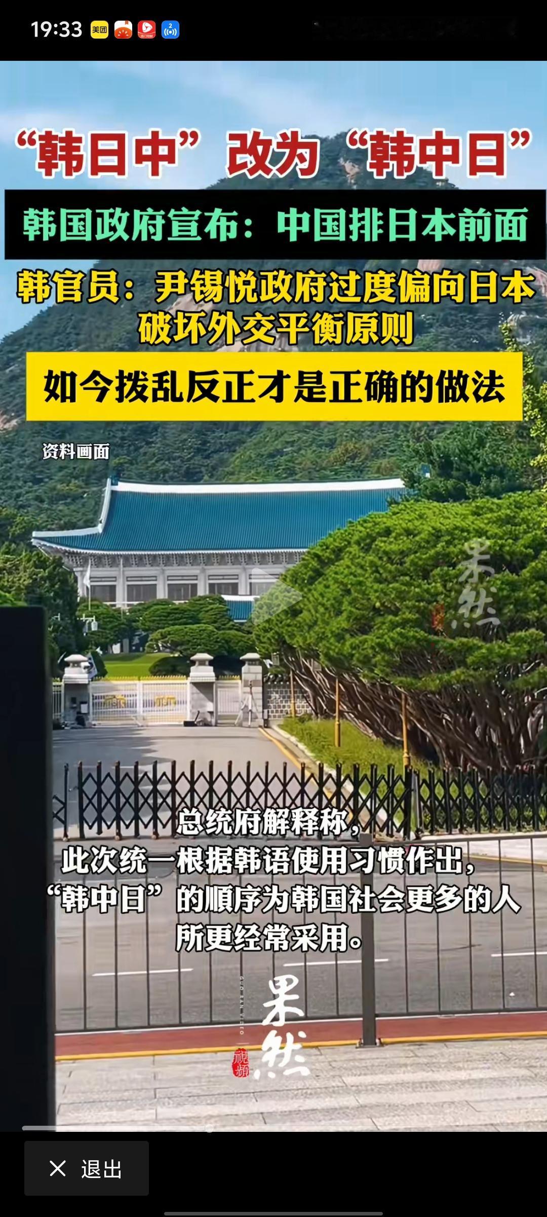 韩国这个国家总喜欢占中国点小便宜。这不又在文字上耍小聪明了。以前不管是新闻媒体还是什么的都叫中日韩。韩国最近把它改成韩中日,说是按照他们国人的习惯改的。懂的人都懂,说白了就是要自我安慰一下,标榜自己是大国。