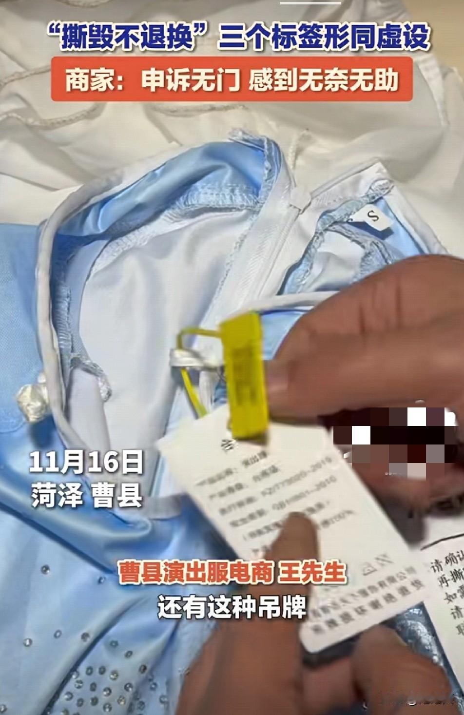 炸了 商家贴3层“撕毁不退”标签演出服穿完集体退 诚信是老实人的枷锁? 曹县演出服商家王先生怕客户“穿完就退” 特意贴了三层“撕毁标签没售后”的标识— 结果演出一结束,客户全把衣服退了,他申诉到没脾气,就剩句“无奈无助” 现在做买卖真魔幻 商家防“白嫖”的规则成了废纸,客户省了钱还挺有理 到底是规则压不住占便宜的心思,还是“用完就退”成了默认的“精明” 当守规矩的人吃亏,这生意里的“诚信”,早成了最不值钱的东西吊牌退货 退货衣服 退货标签 演出服退货事件 礼服退货 退货贴 每天分享一点人生感悟
