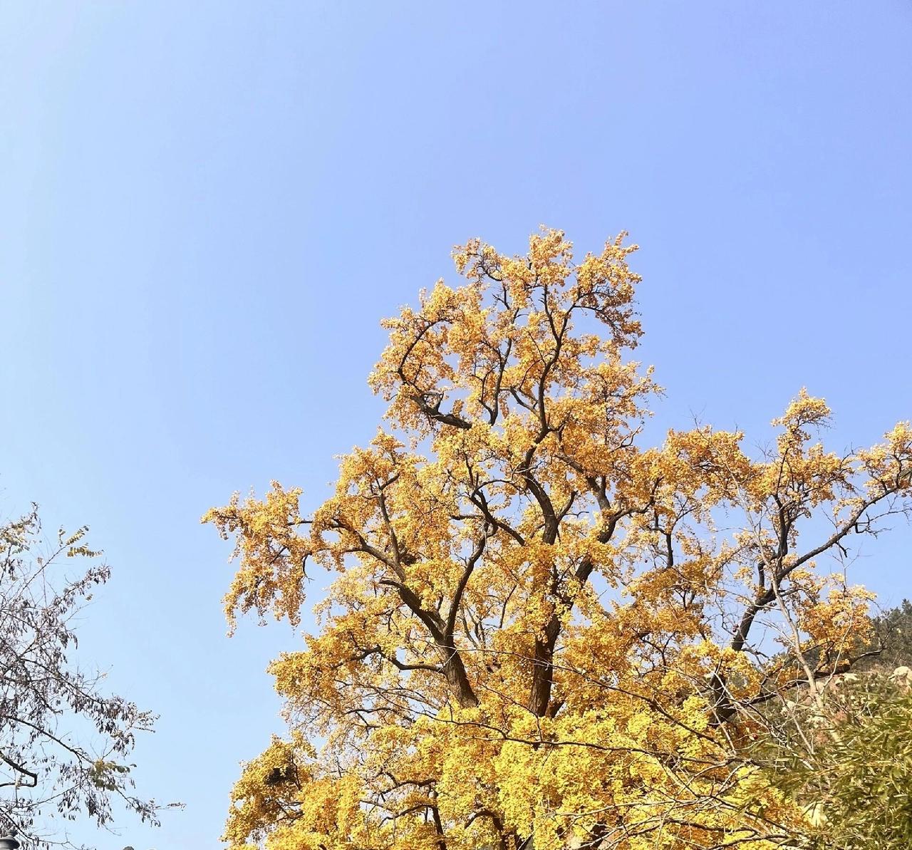 冬日生活打卡季青岛市李沧区竹子庵公园玄阳观里的千年银杏树叶子黄了,现在是最佳观赏