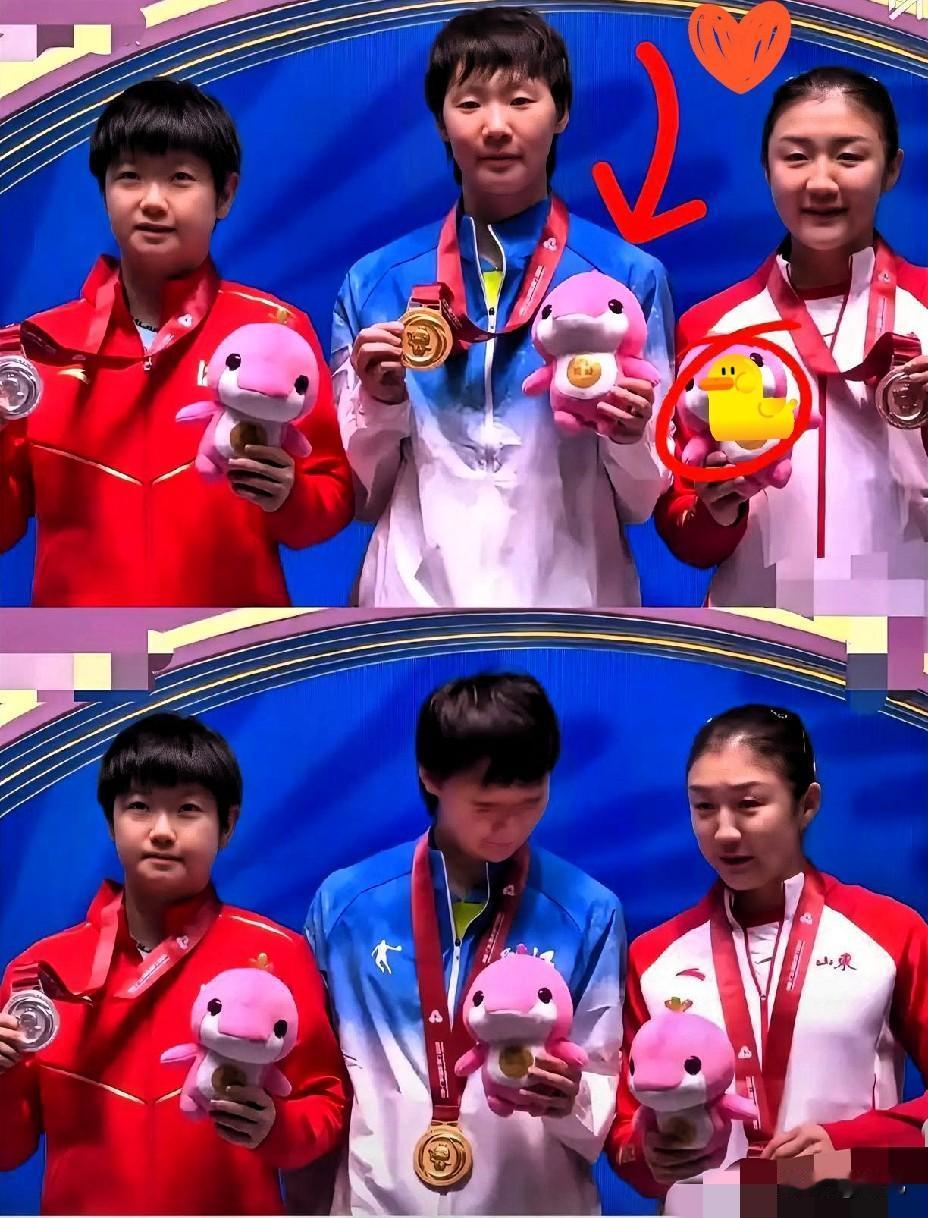 国乒三金花同框合照, 居然藏着这么戳人的小细节! 谁还没发现孙颖莎、王曼昱和陈梦的“拿奖姿势差”? 莎莎和曼昱默契拉满,都是右手握奖牌、左手抱吉祥物,妥妥的青春热血范儿,而陈梦偏偏反着来,左手拿奖牌右手抱玩偶,自带一种从容随性的气场。这哪是单纯的个人习惯,分明是性格的真实写照——莎莎的灵动、曼昱的飒爽,还有大梦的沉稳,全在这小动作里藏着呢。 从东京到巴黎再到全运会,她们既是赛场上互相追赶的对手,也是私下里互怼互宠的姐妹,这份又竞争又扶持的情谊才最动人。照片里的她们笑得坦荡又明媚,让人看着就忍不住心软。 你们觉得这个手势差异是不是超贴合她们的性格?还发现过国乒金花们哪些可爱的小默契?快来评论区聊聊~