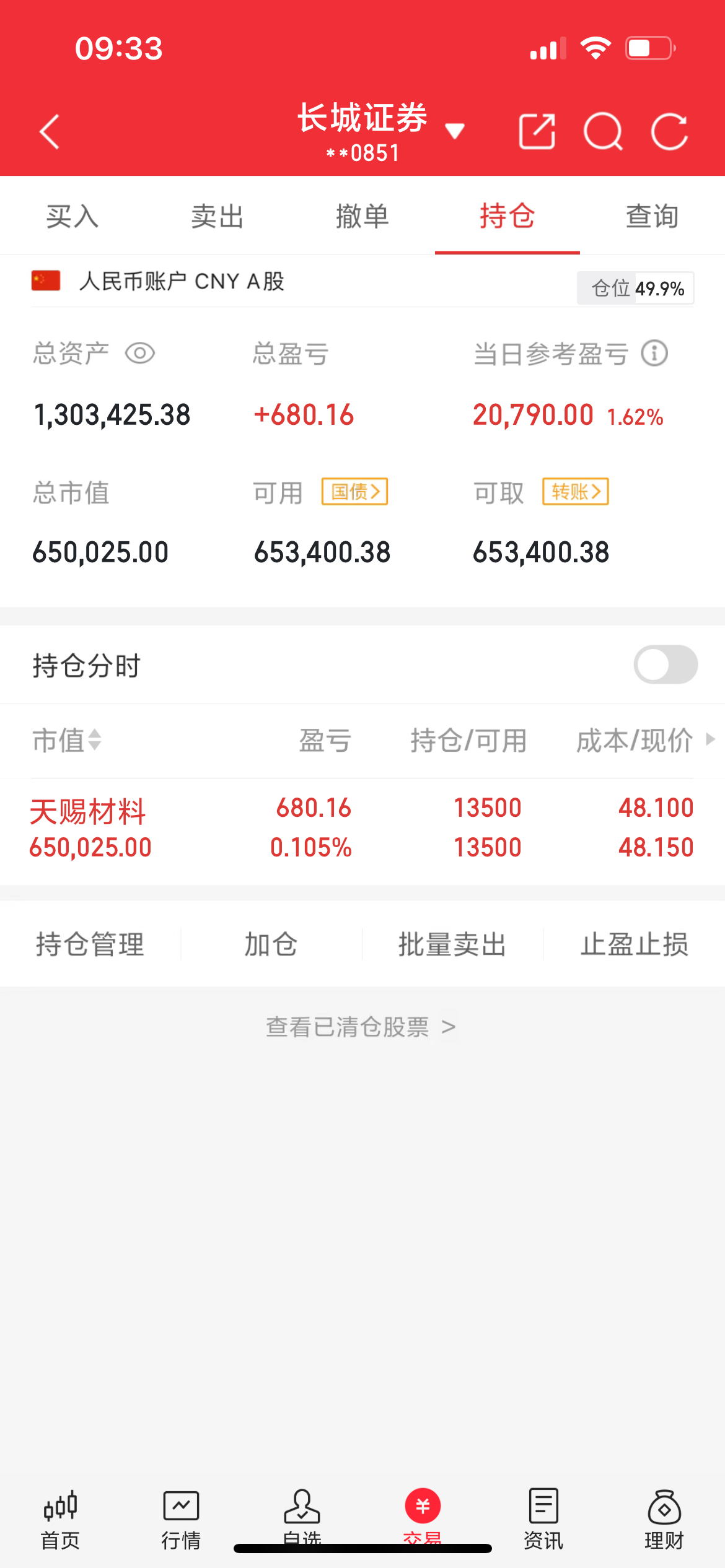 目前持有天赐材料002709耐心等待,一会拉高落袋